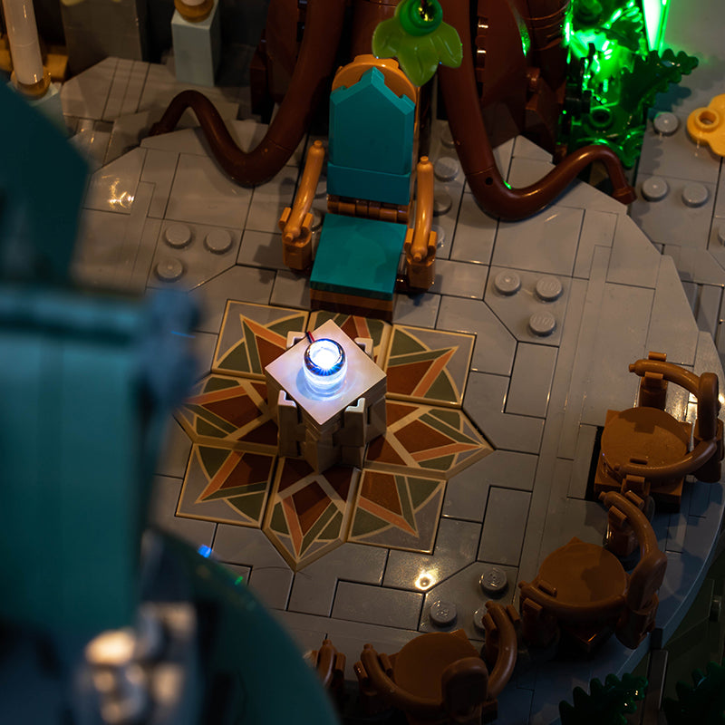 With the BrickBling lighting kit, your LEGO creation reflects the enchanting aura of the sanctuary. Precisely crafted LED lights illuminate every detail, from the tranquil waterfall to the intricate architecture. Whether it's day or night in your LEGO world, Rivendell radiates the mystique of an ancient elven realm.