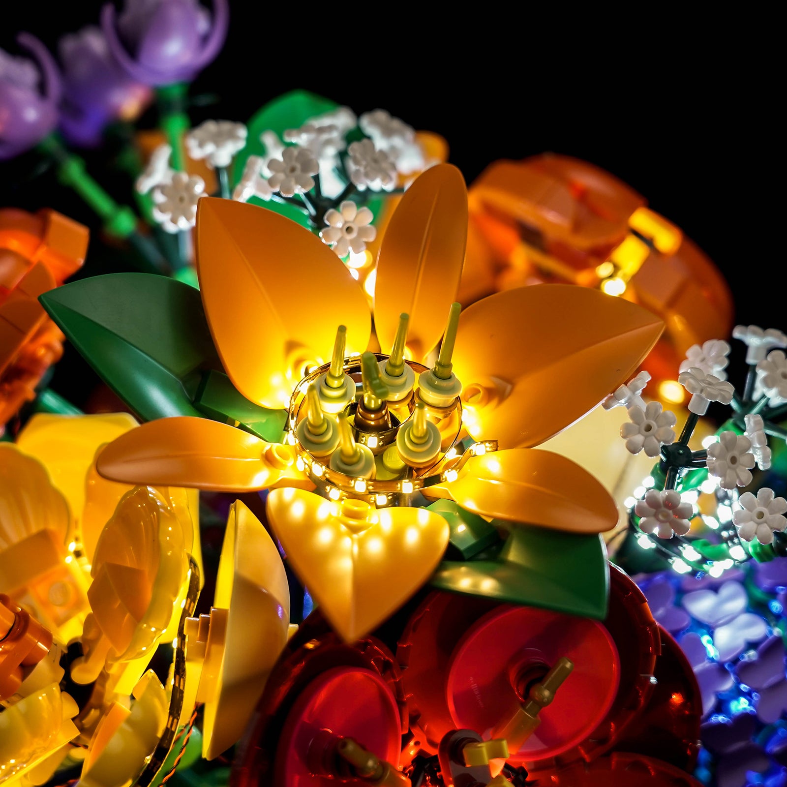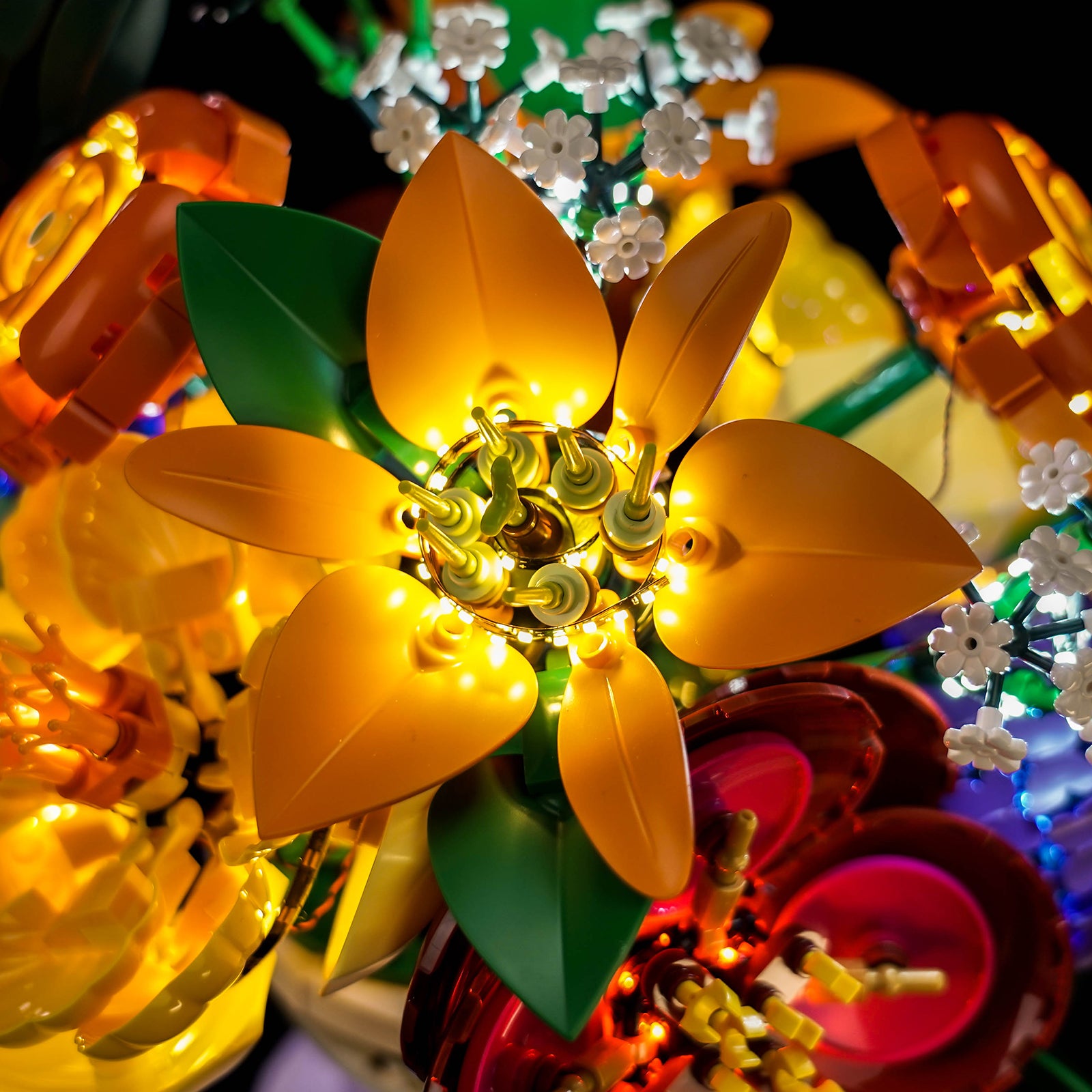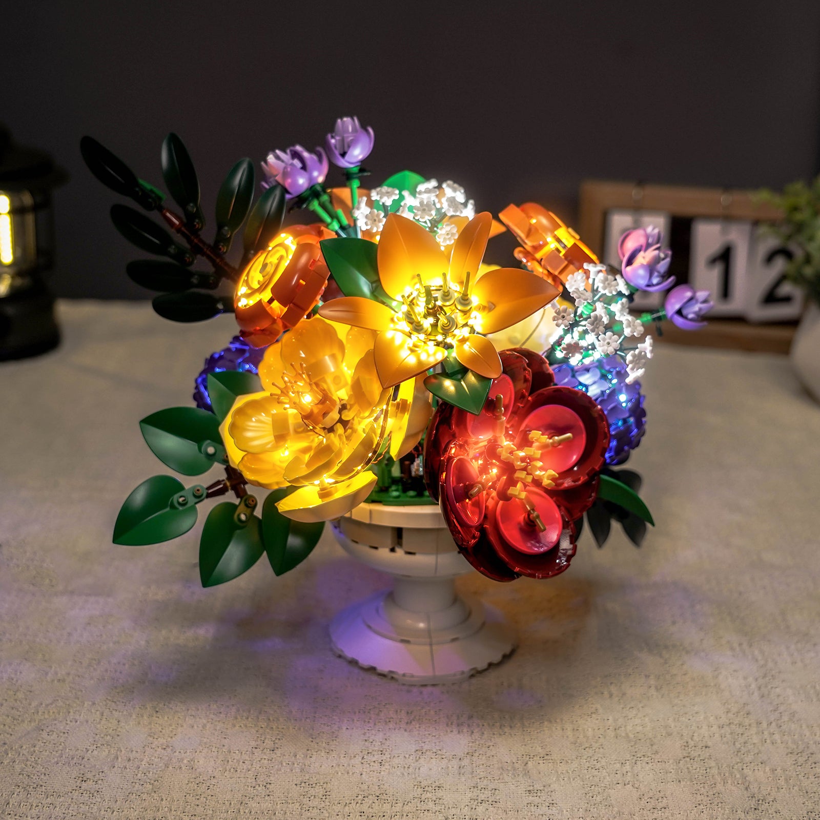 Bring the beauty of nature indoors with LEGO The Botanical Collection Flower Arrangement 10345 and our BrickBling Light Kit, and you can turn this delicate bouquet of flowers into a focal point in your home or office.