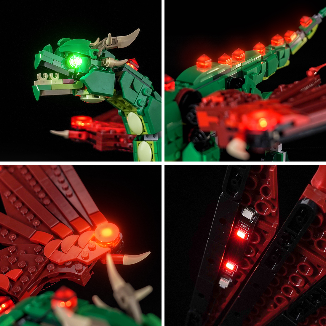- Safety First: The BrickBling light kit for the LEGO Creator 3-in-1 Medieval Dragon 31161 is crafted with premium copper wiring and durable ABS plastic. Designed with anti-heat and flame-resistant properties, its 5V low-voltage system guarantees both safety and reliable performance.