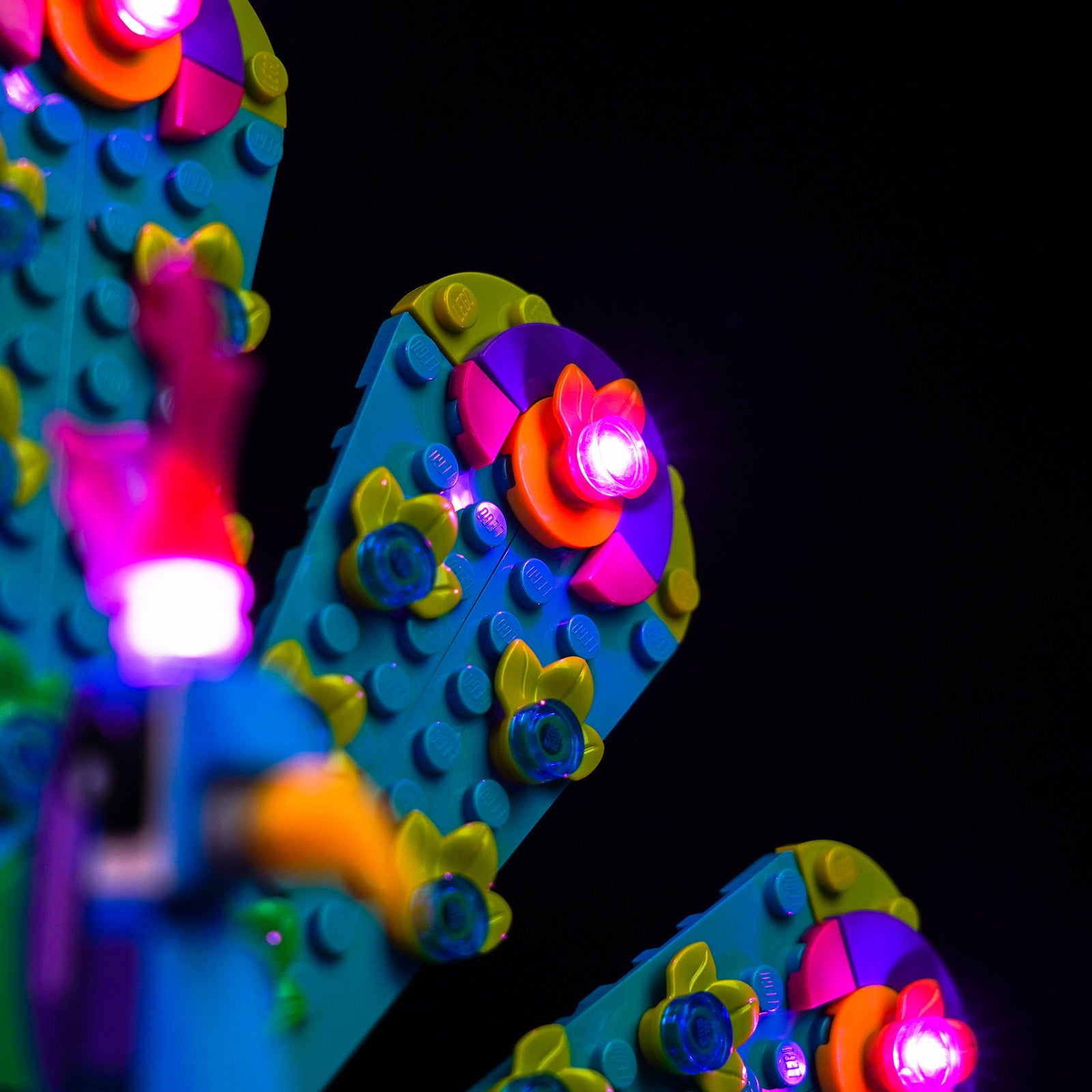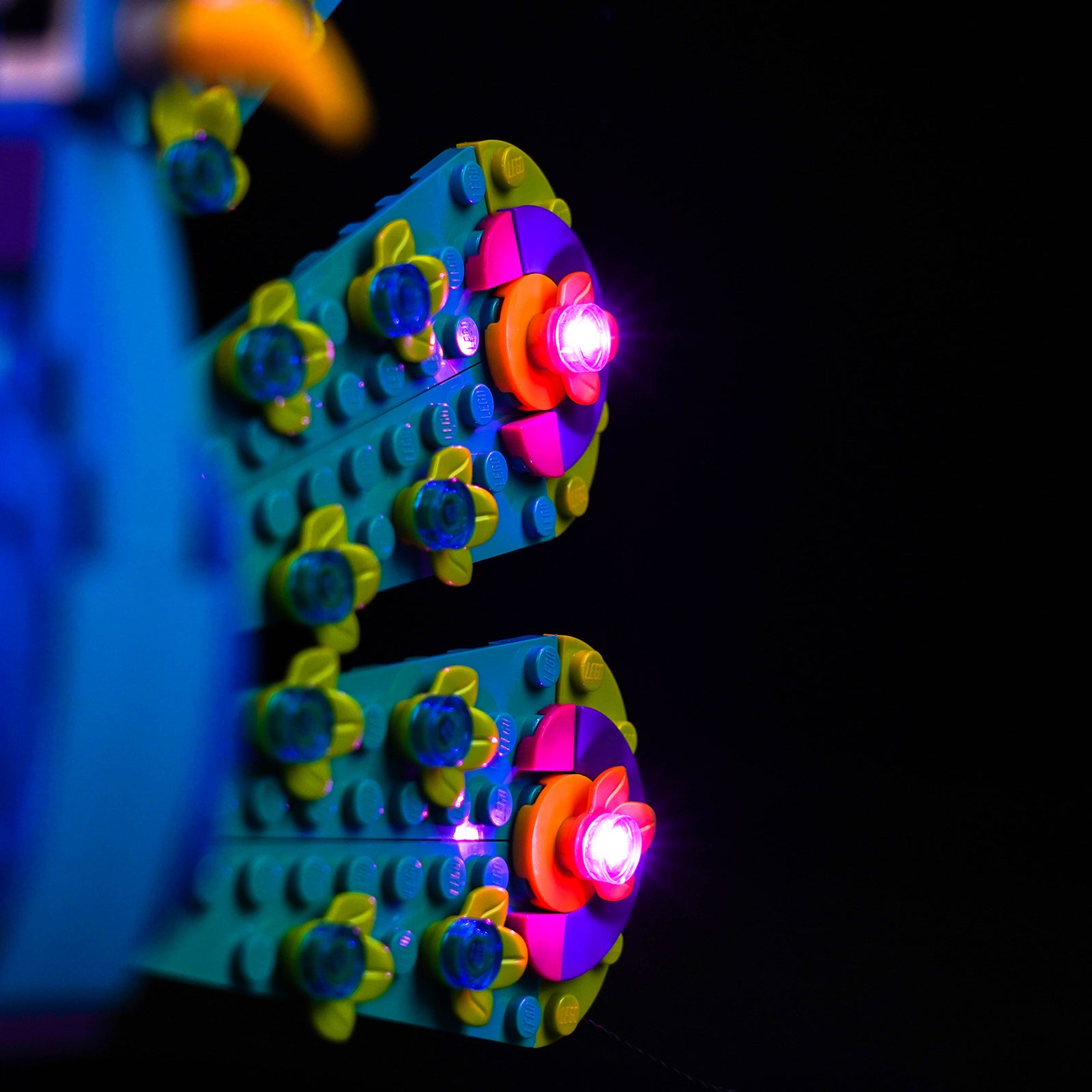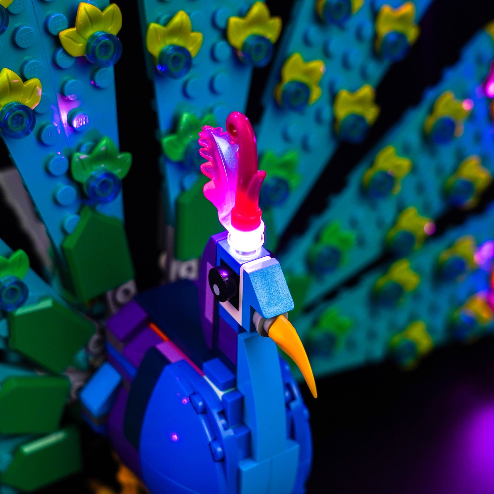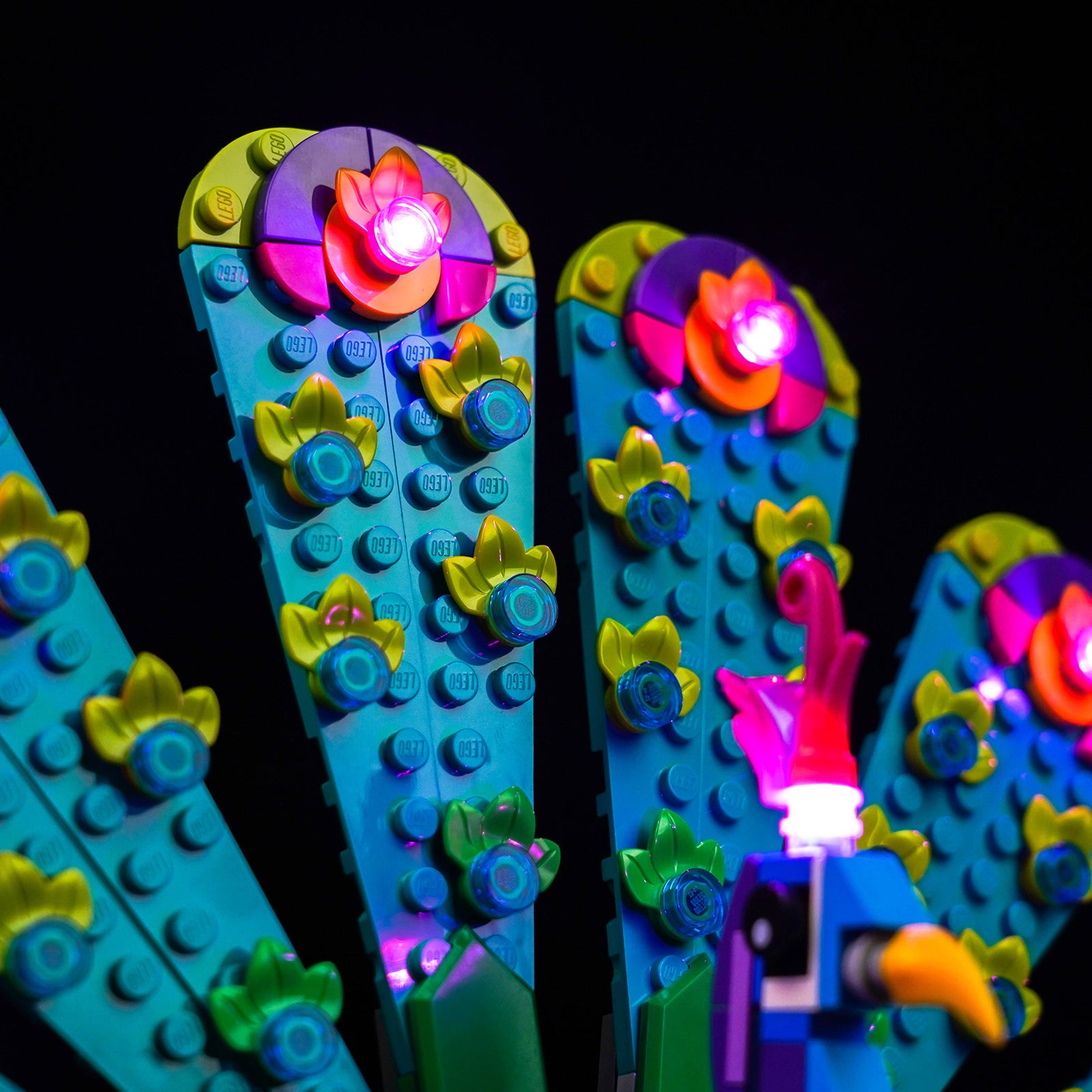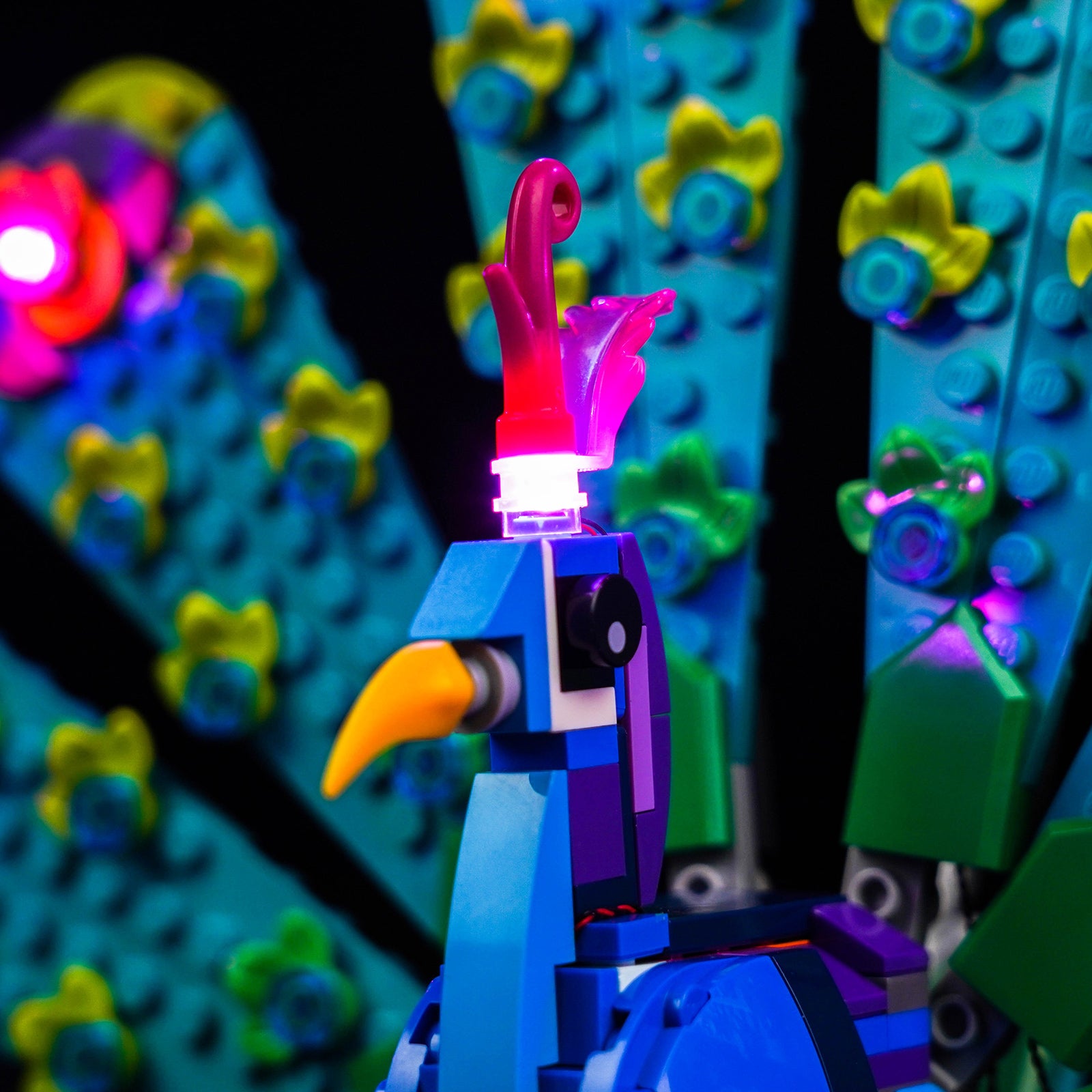 The DIY lights give your LEGO 31157 energy and life, making it from dark to bright, no longer dull. A great decoration for your room or office. With the careful selection of 9 LEDs, the head crest and feathers of the peacock emanate a mesmerizing pink glow, adding a hint of mystery to your LEGO creation while enhancing its visual appeal.