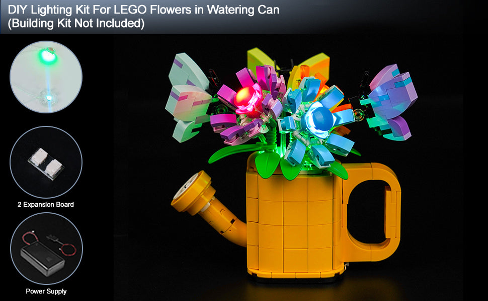 - ��Safe to Use��Our DIY lights for LEGO Creator 3 in 1 Flowers in Watering Can are made of high quality copper lines and ABS plastic, they are featuring anti-heat and anti-burning can prolong their service time. 5V low voltage bring you a safer experience. Please assured to use it.