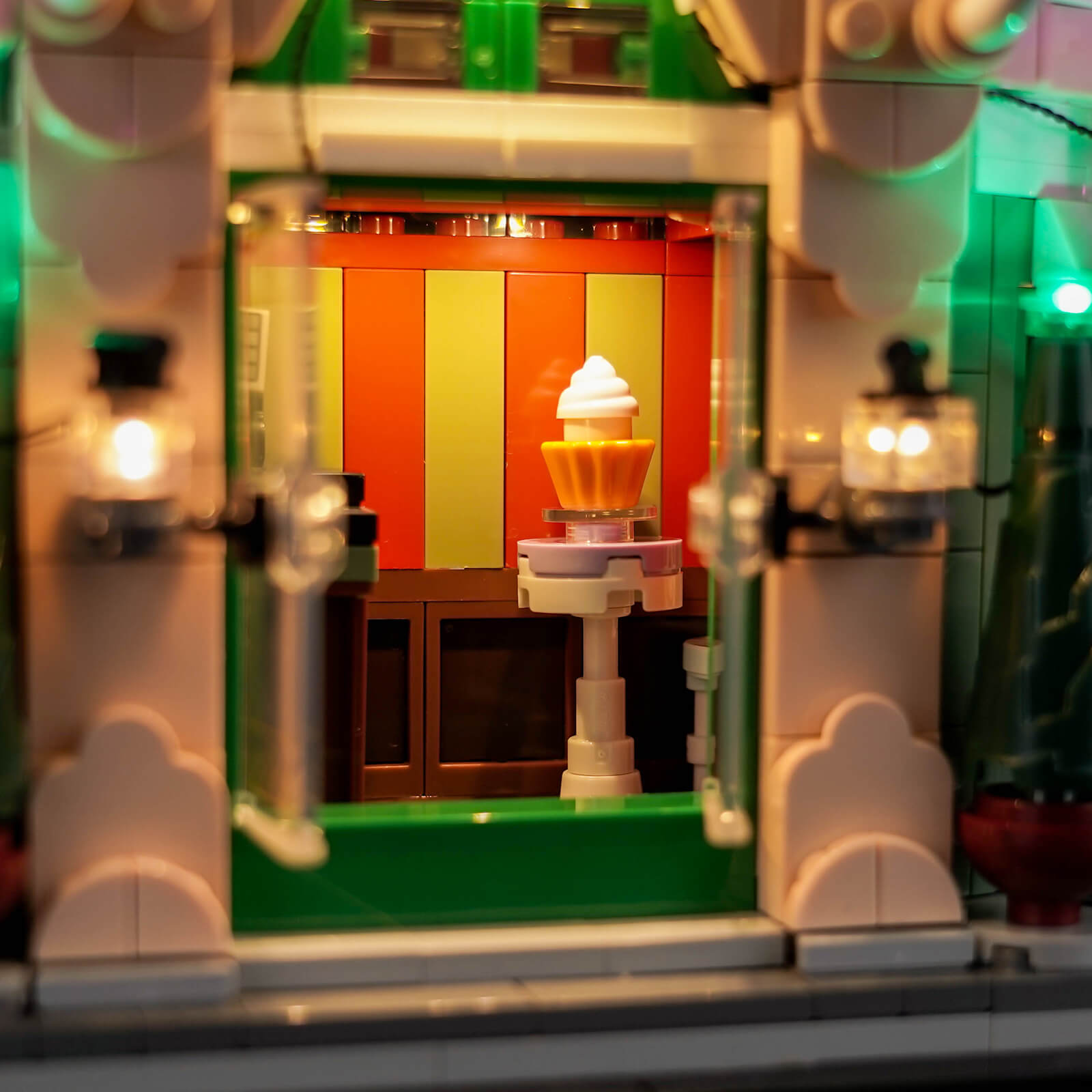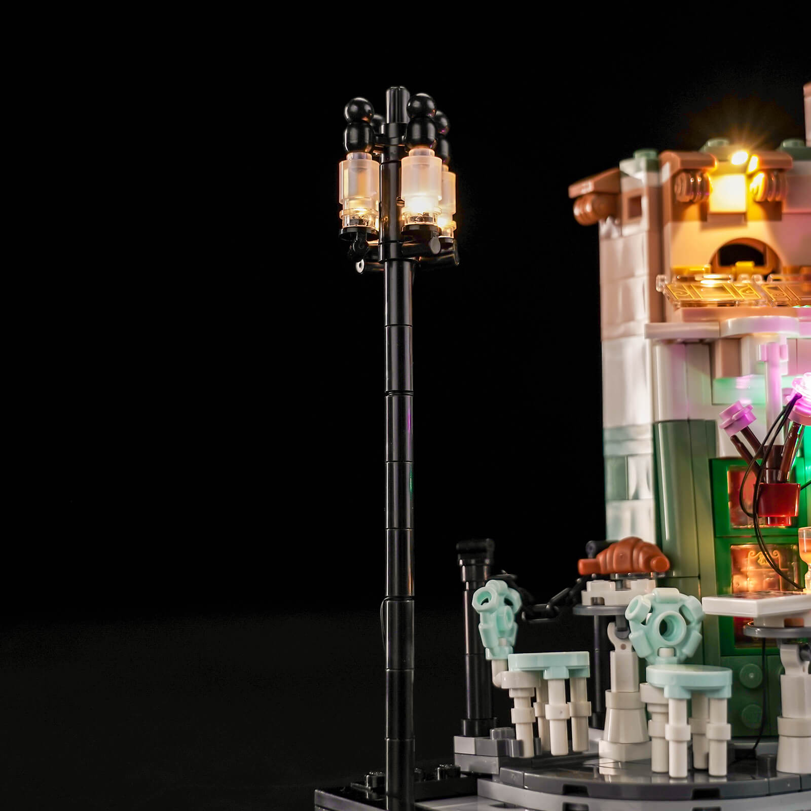 BrickBling Light Kit creates its own French charm for LEGO Icons French Caf茅 10362, letting light and shadow flow in French style.