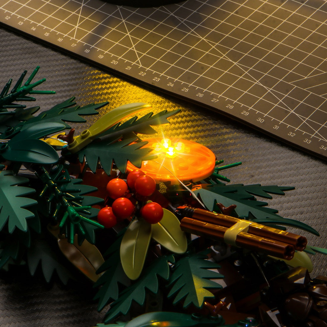 The LED light set is compatible with LEGO Icons Wreath 10340, creating a seasonal display for your home or office.
