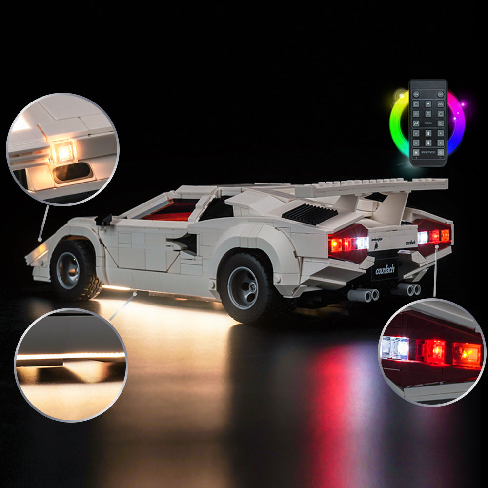 Light up your LEGO Icons Lamborghini Countach 5000 Quattrovalvole 10337 with the BrickBling Light Kit, paying tribute to the boys’ dream car with a charming light.