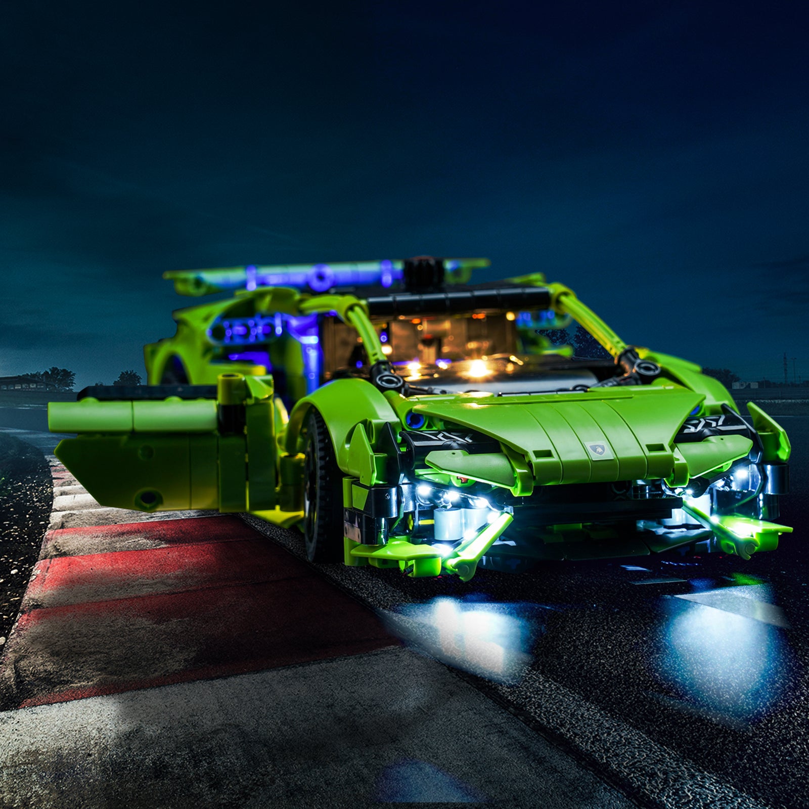Bring magical shine to your Lamborghini Huracán Tecnica 42161. This lighting kit is designed especially for the Lego® Technic Lamborghini Huracán Tecnica 42161. This highly detailed Lego model is a spectacle in itself, but when paired with BrickBling light kit, the charming model comes alive, not only during the day but also at night.