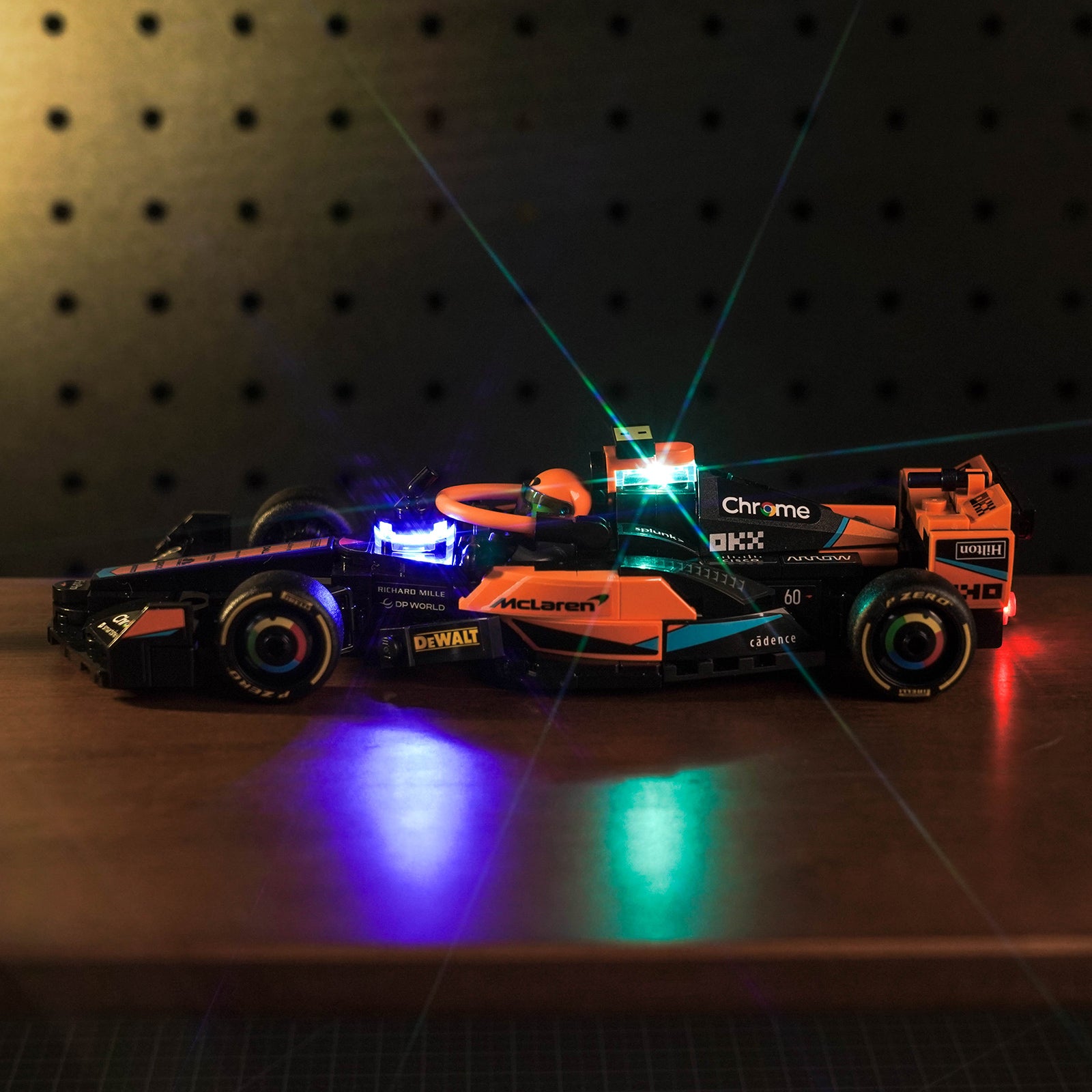 Now Upgrade your LEGO Speed Champions 2023 McLaren Formula 1 Race Car with our exclusive light kit and embark on an electrifying journey of light and speed with BrickBling together.