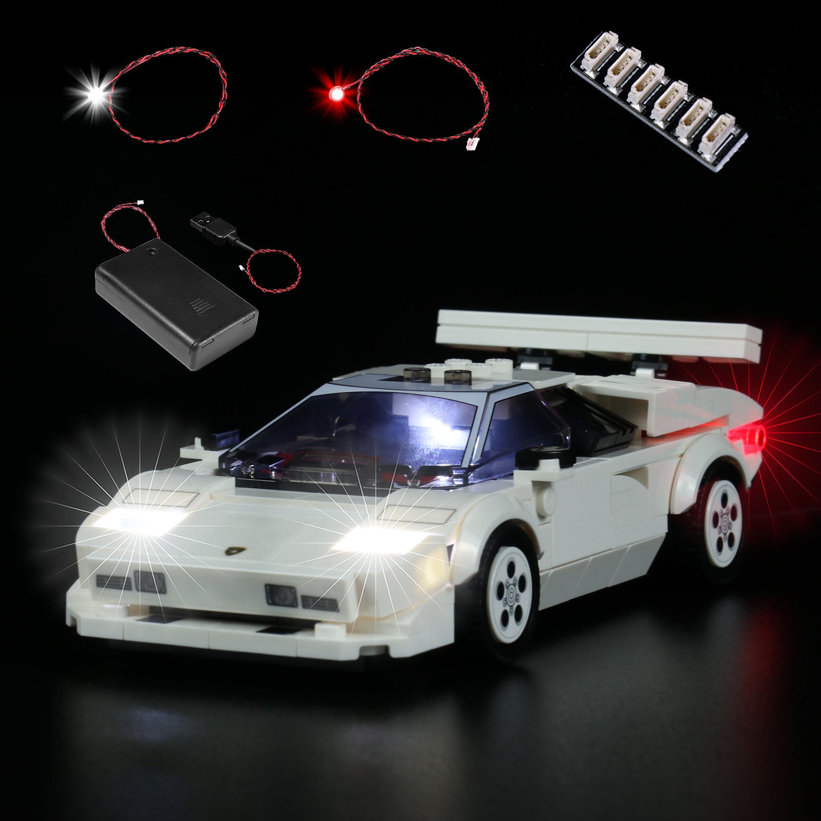 This is a complete and unified set of LED lights for the Lego Lamborghini Car Set, which works well with connecting cables for great lighting effects. When lit up, the static display piece becomes more interesting. Ideal for decoration and exhibition in the office or home.