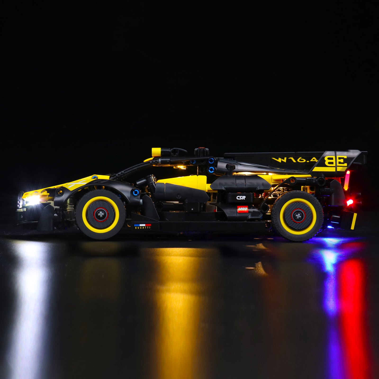 The vibrant LEDs accentuate every curve and detail of the Bugatti Bolide, transforming it into a radiant work of art. With this light kit, your LEGO Technic creation transcends the boundaries of craftsmanship, becoming a brilliant showcase of innovation and design.