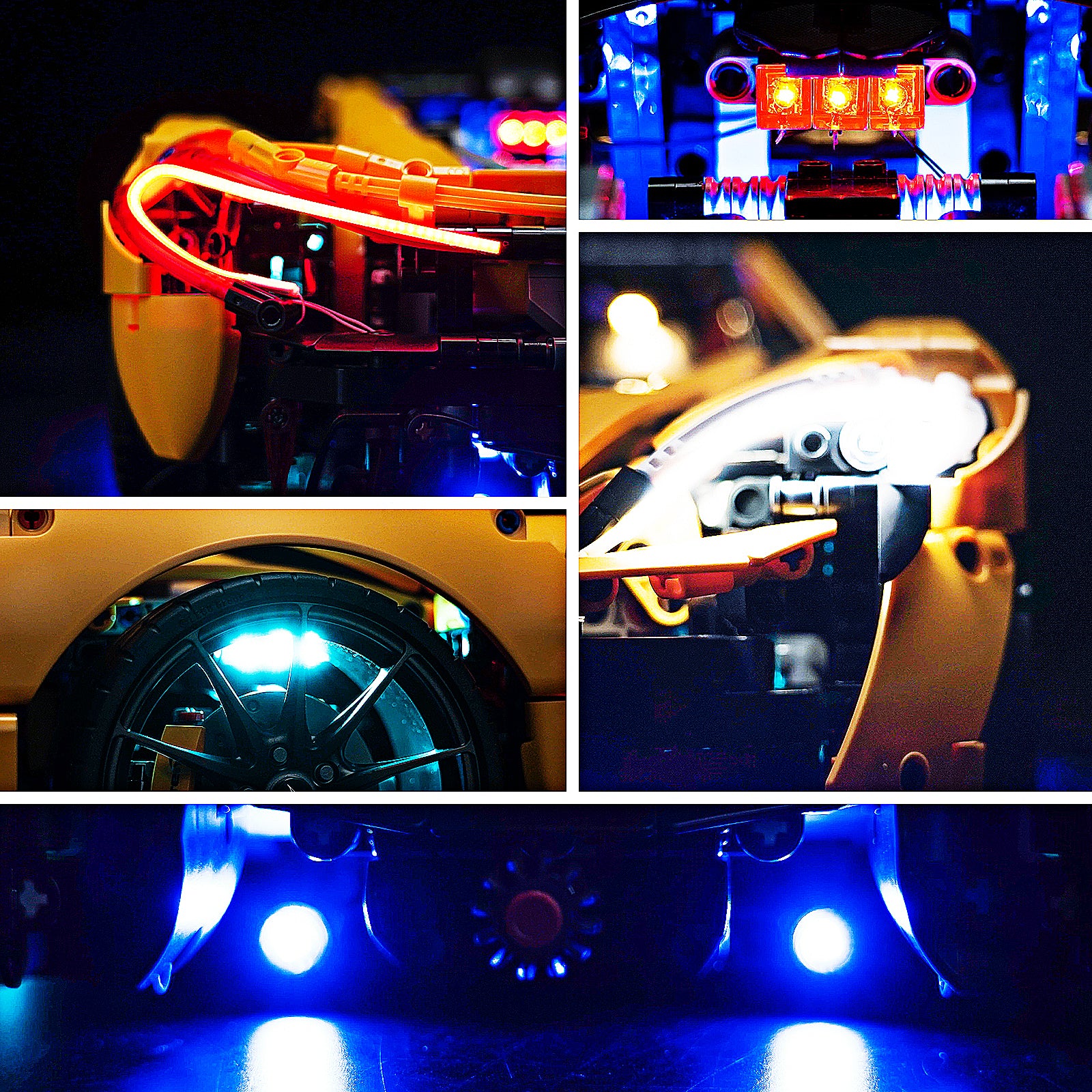Transform your LEGO Technic McLaren P1 42172 with this LED lighting kit, turning it into a stunning display of light and shadow that shines brilliantly in the dark.