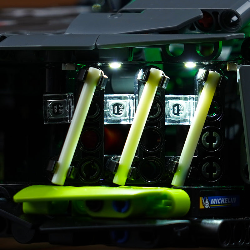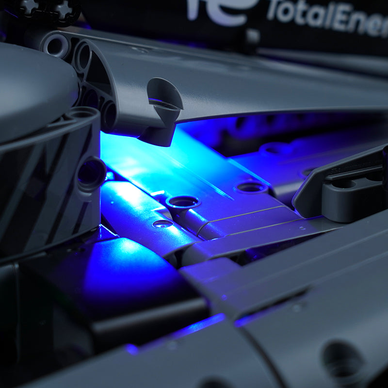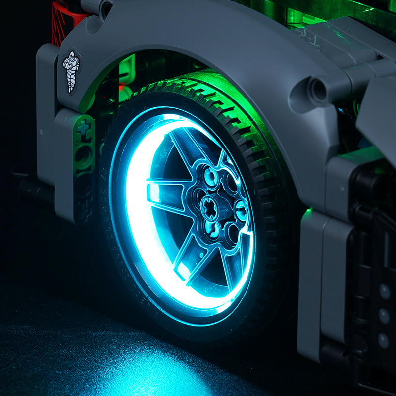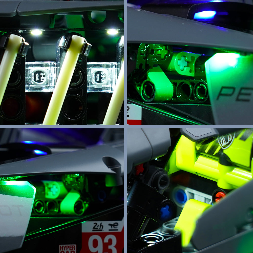 - We added extra Light strips for the four wheels on the basic of classic version lights for LEGO Le Mans Hybrid Hypercar, better restore the racing car.