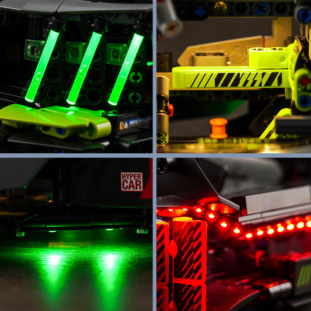 The light kit includes green lights, red lights and warm-white lights to light up the head/rear/inside body of the PEUGEOT 9X8 24H Le Mans Hybrid Hypercar 42156 Lego car. We are sure you'll love our design.