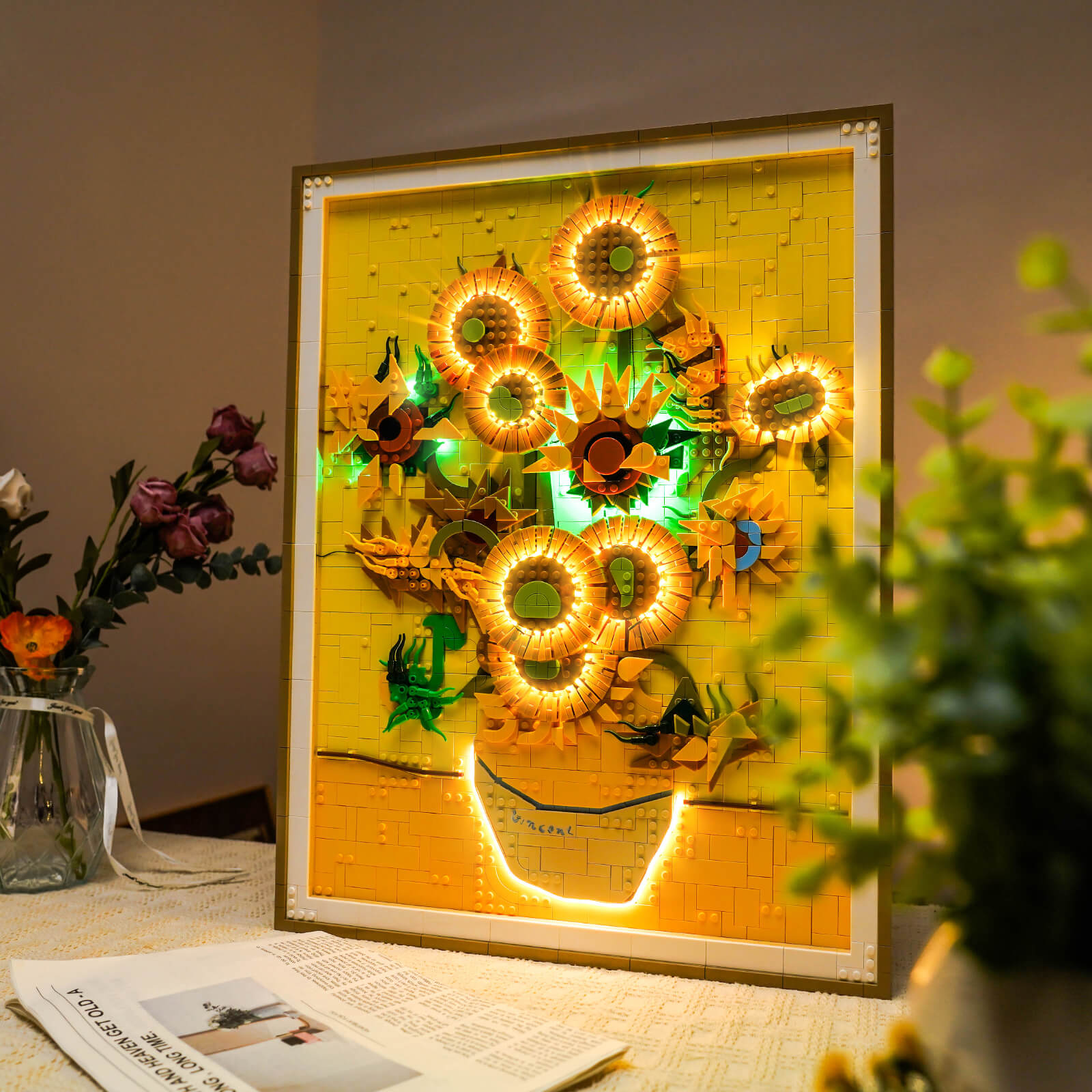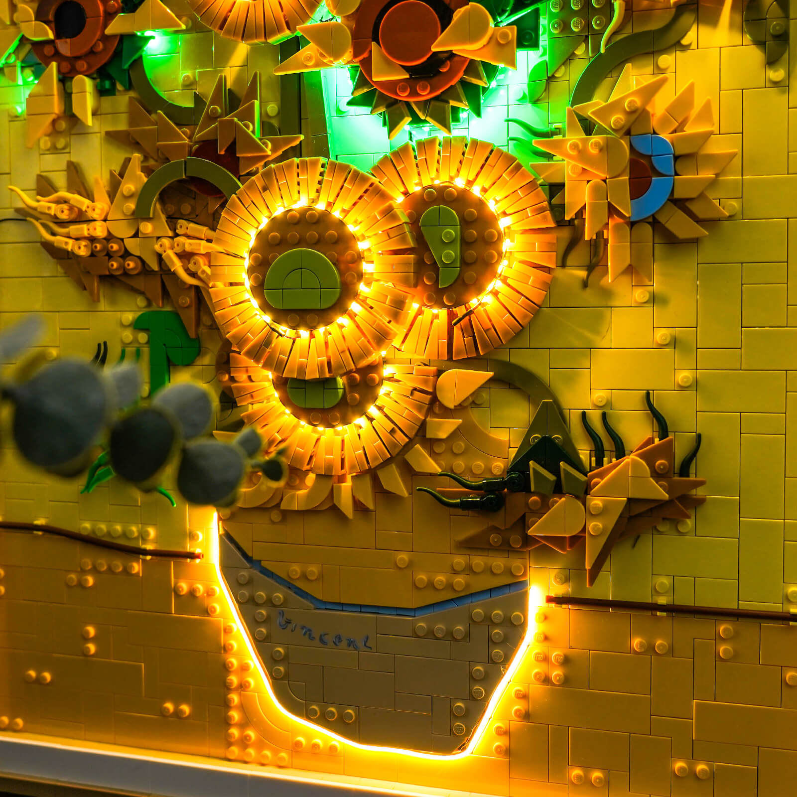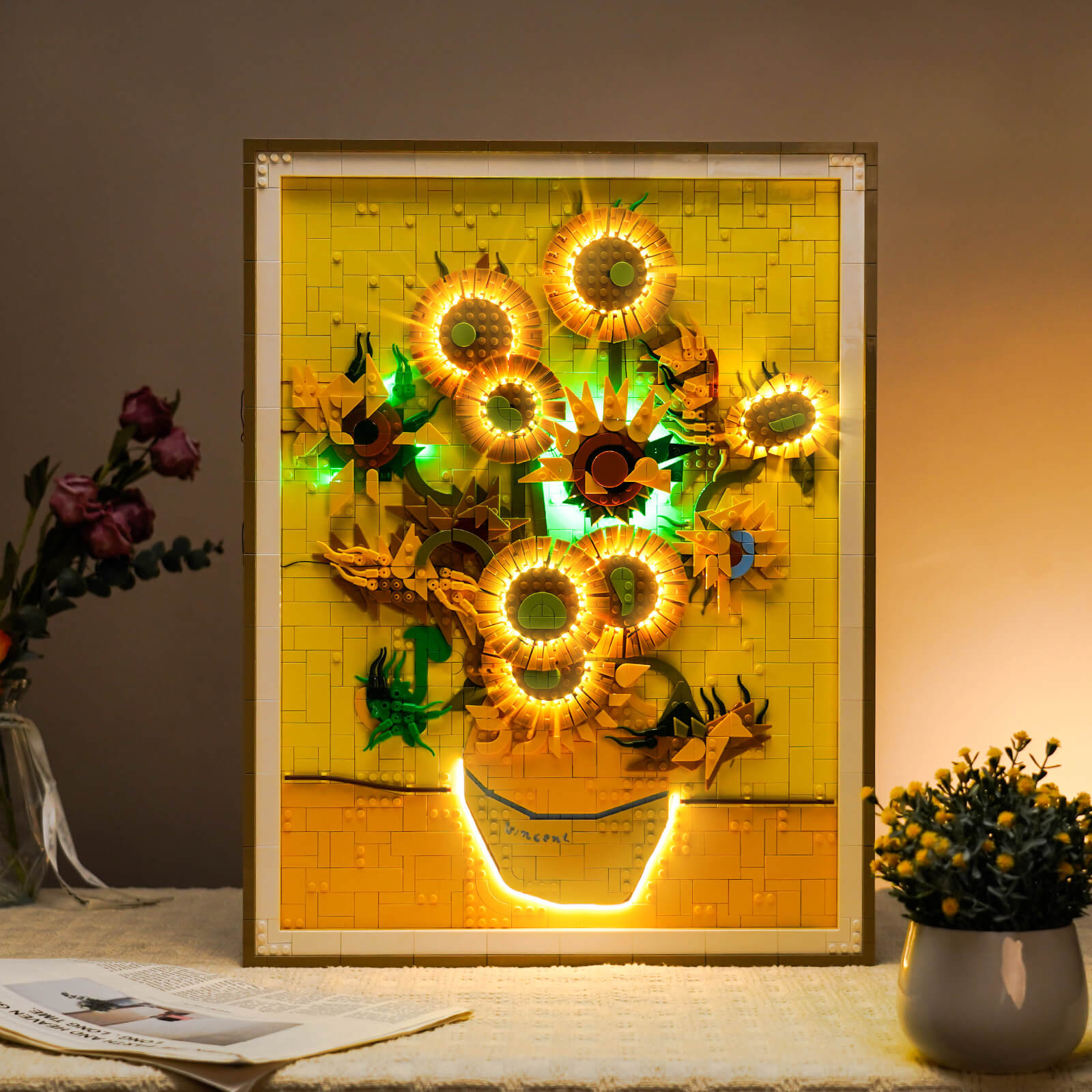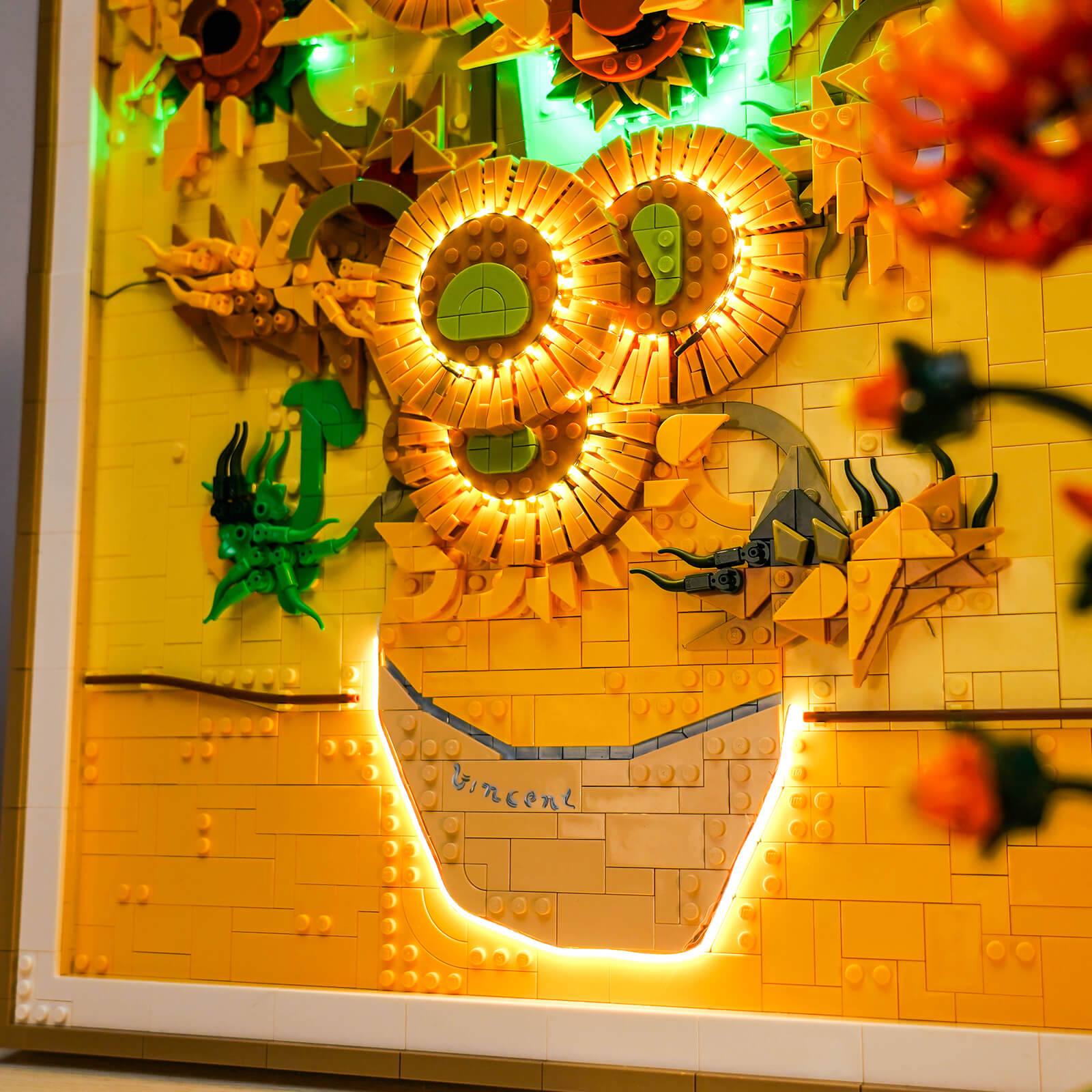 - Ingenious design: Perfectly compatible with LEGO Art Vincent van Gogh - Sunflowers 31215 Customized version, seamlessly fitting each petal and frame. Hidden wiring without damaging the building blocks.