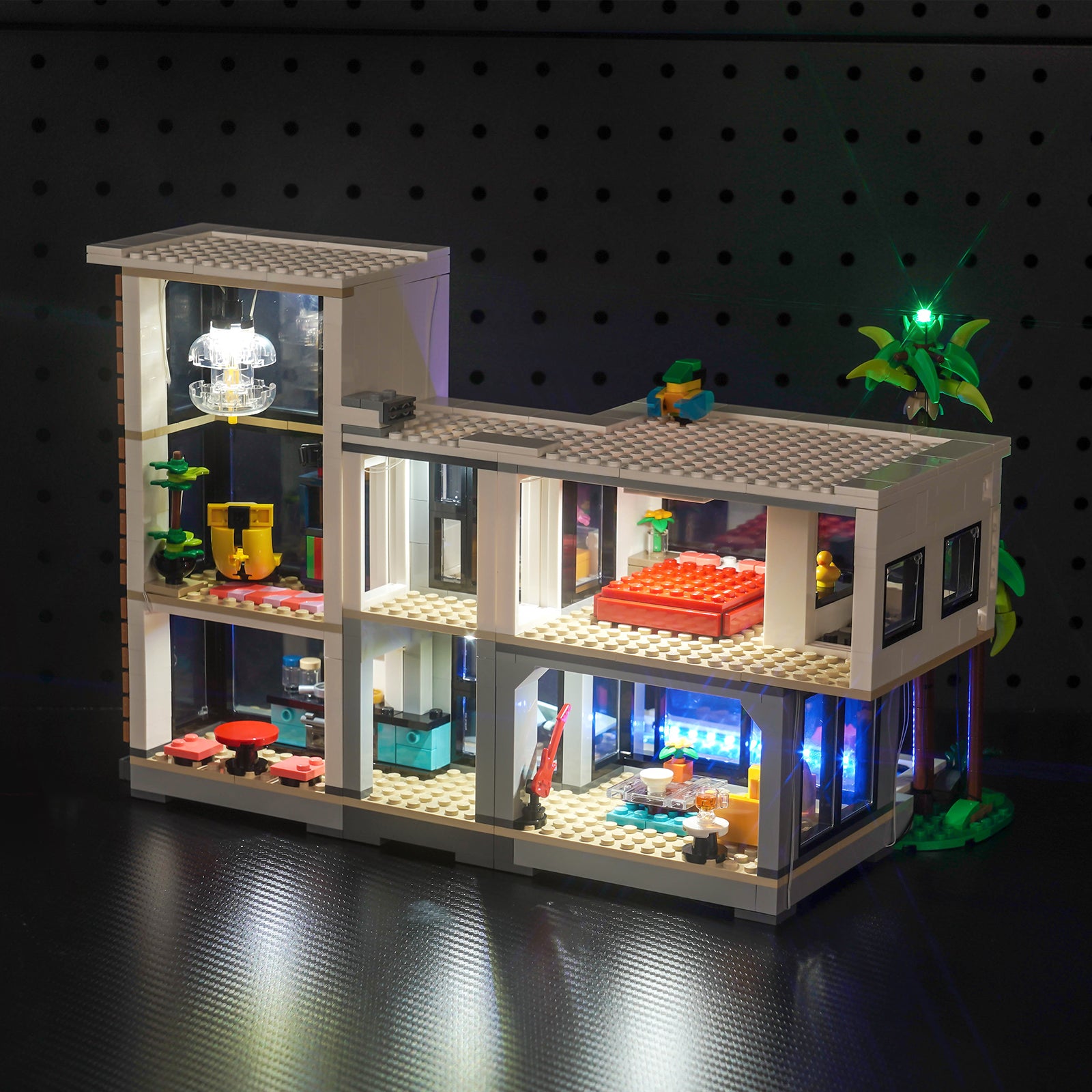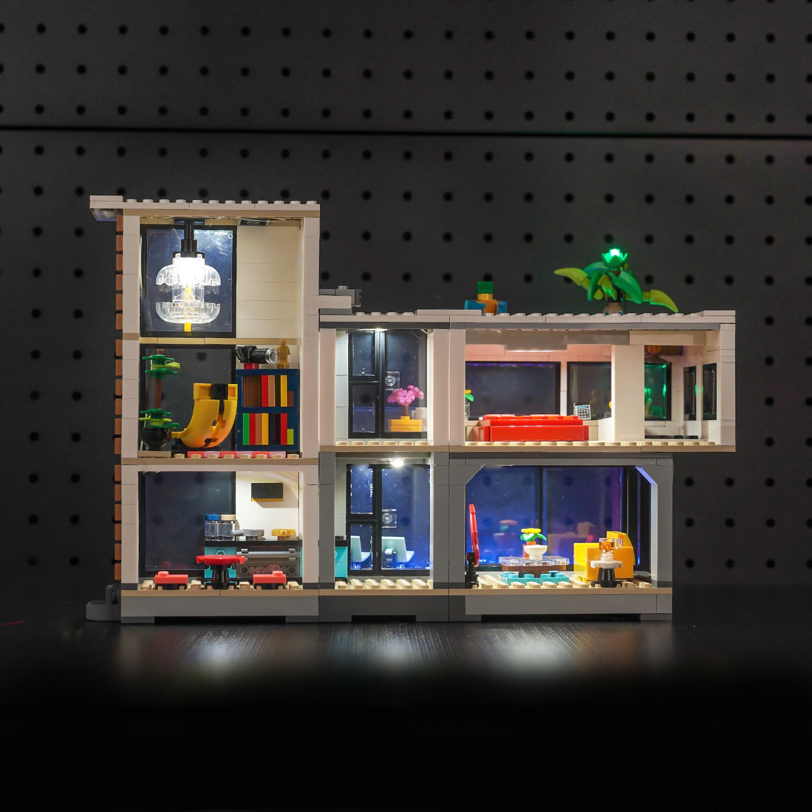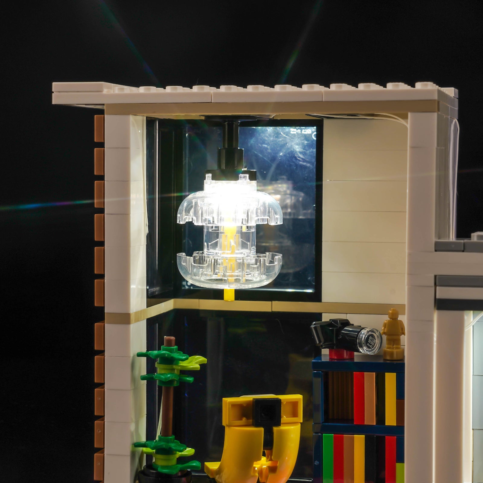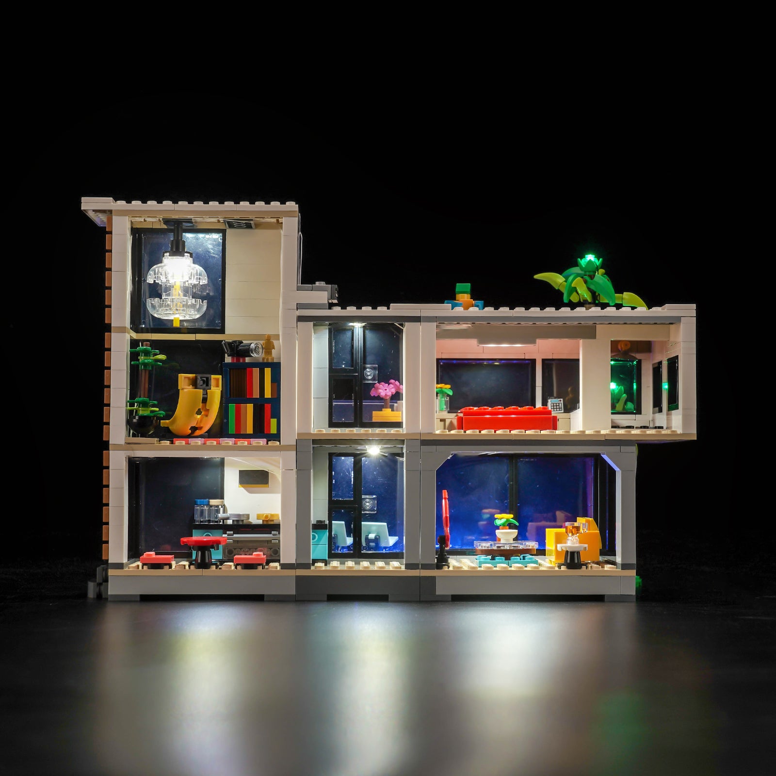 This lighting set seamlessly integrates into every room of LEGO 31153 Modern House. From the cozy living room to the elegant bedroom, to the tranquil study and towering palm trees, BrickBling makes every brick and tile shine, creating an enchanting nighttime landscape.