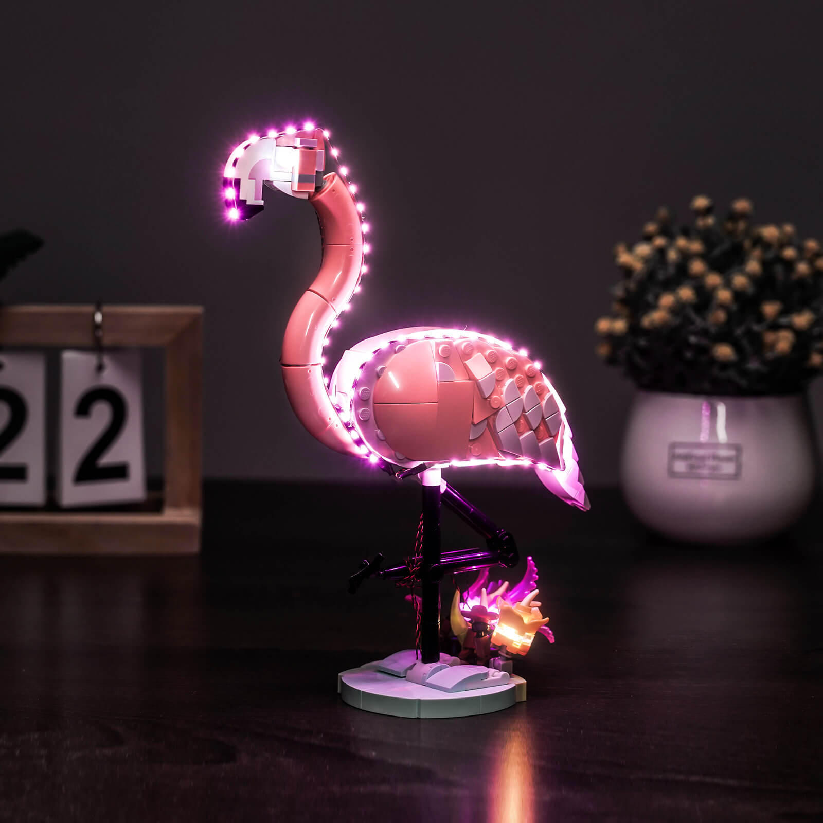 The BrickBling Light Kit gives the LEGO Creator 3-in-1 Wild Animals: Pink Flamingo 31170 more life and vitality, showing its unique beauty.