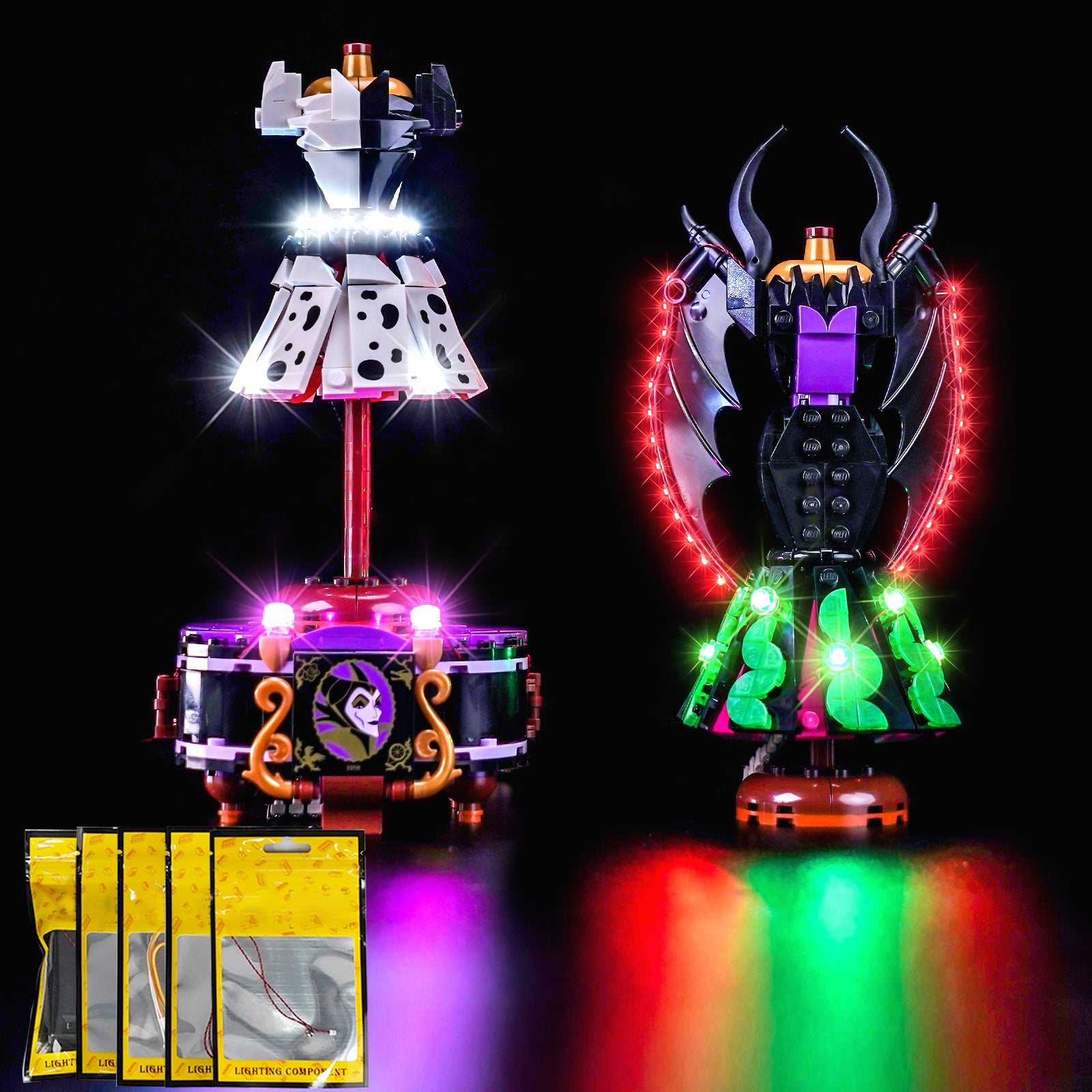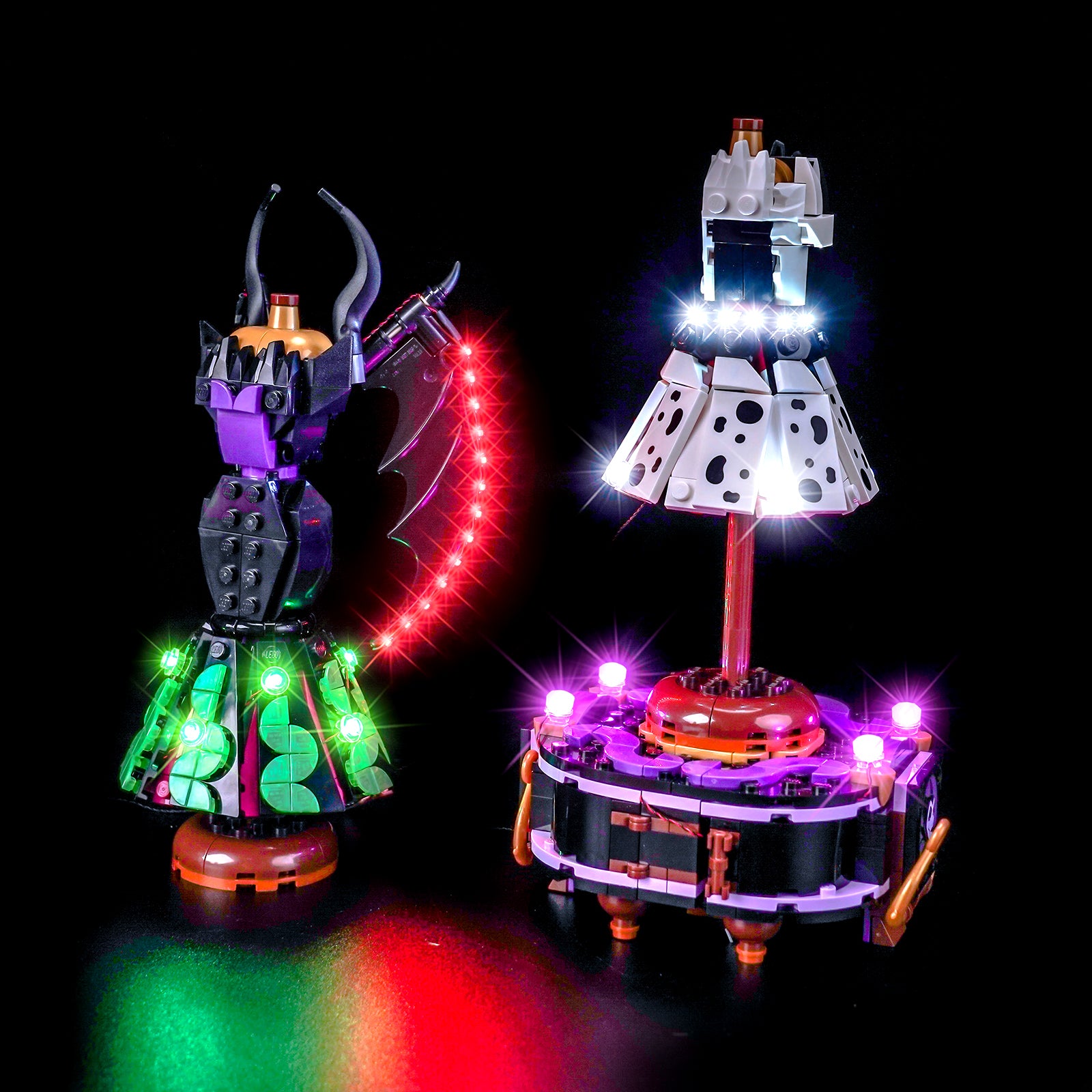 BrickBling has carefully crafted a lighting kit for LEGO Disney Maleficent's and Cruella De Vil's Dresses 43262, lighting up the classic looks of two legendary Disney villains, instantly awakening their unique dark charm.