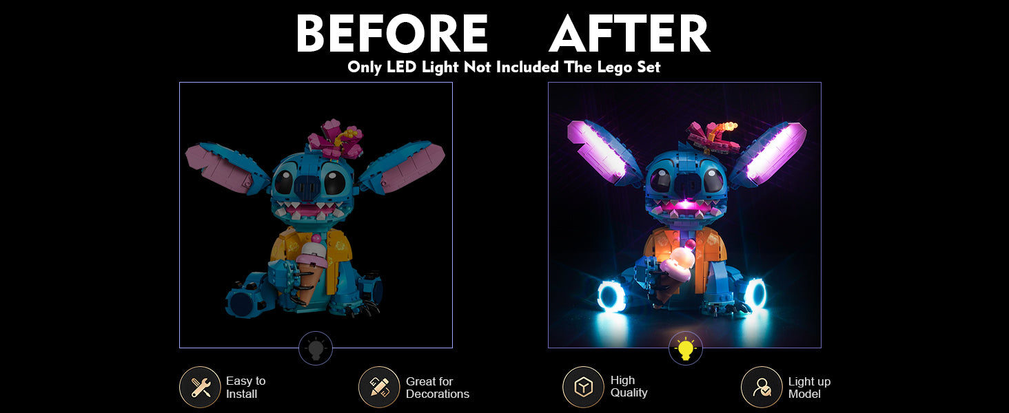 - 【Great Gift】A great gift for Disney Stitch fans or any kid who owns LEGO Stitch Set, full of details to inspire the imagination with this striking light kit.