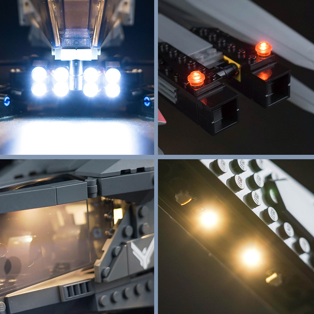 With BrickBling's advanced LED technology, the LEGO Atreides Royal Ornithopter casts a spellbinding glow that captivates all who behold its beauty. The warm light in the cockpit makes the pilot appear faintly, which is very cool. The white LED in the front simulates the weapon system of the laser array and the tail fin is dotted with 2 red LEDs. Every detail of the entire model is illuminated, greatly improving the viewing experience.