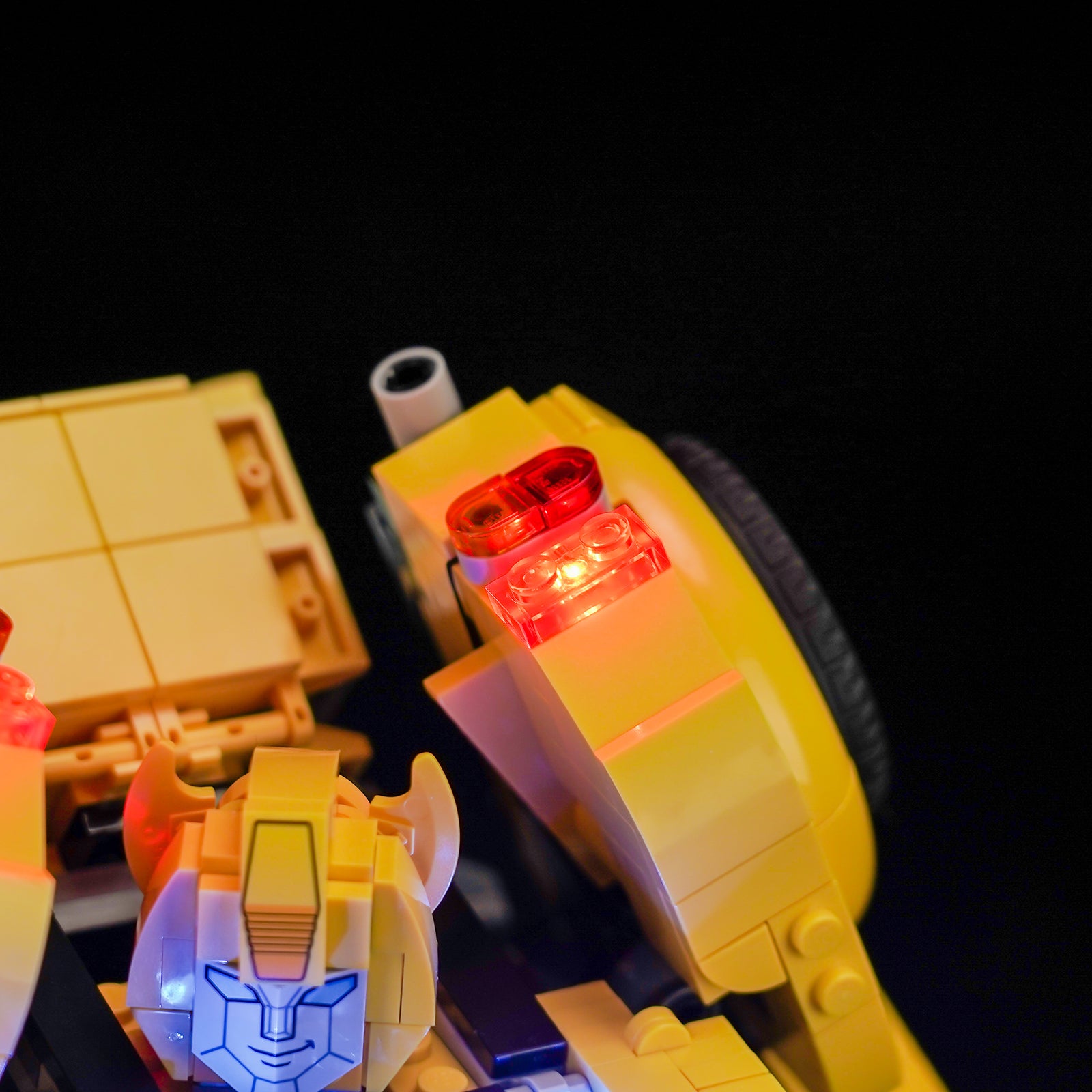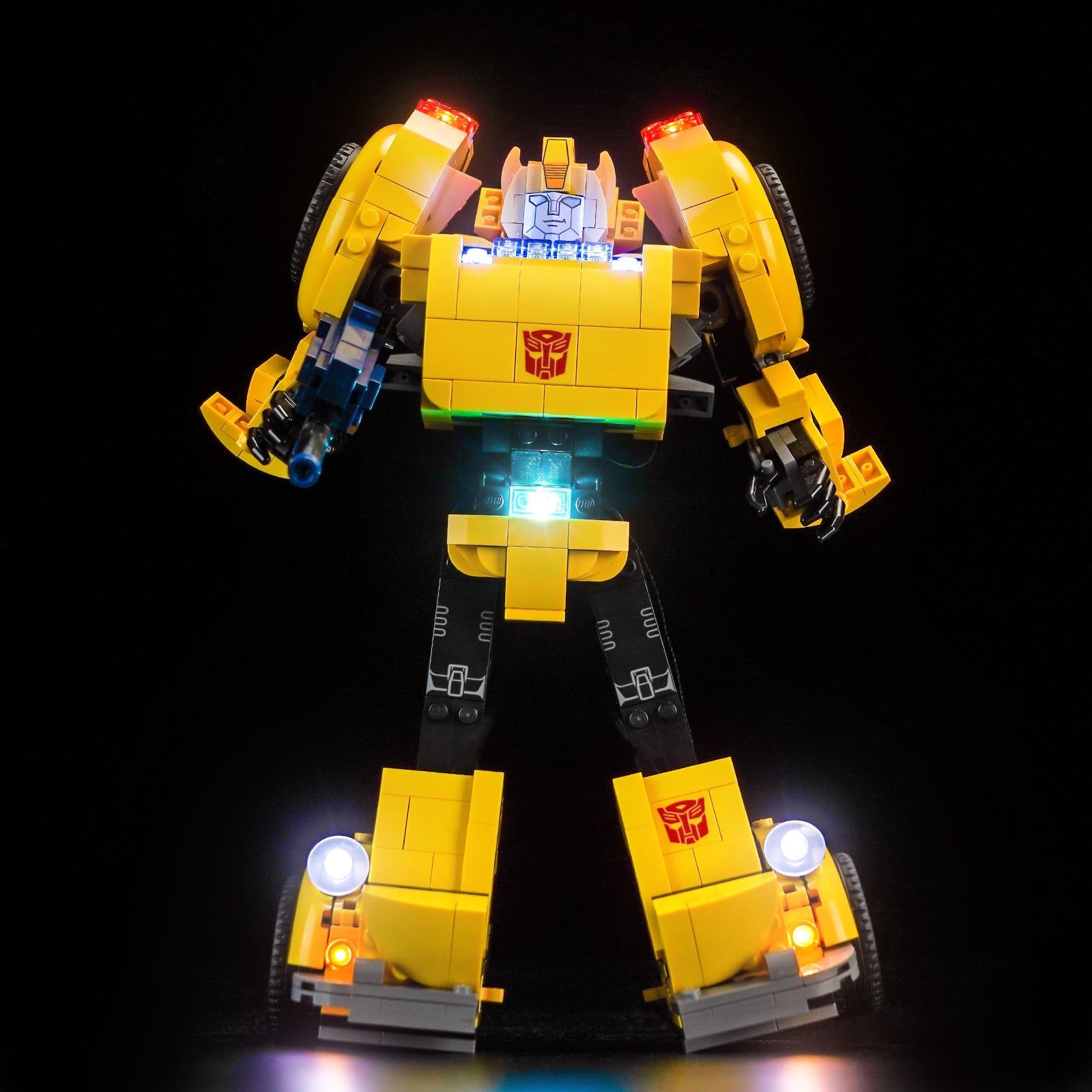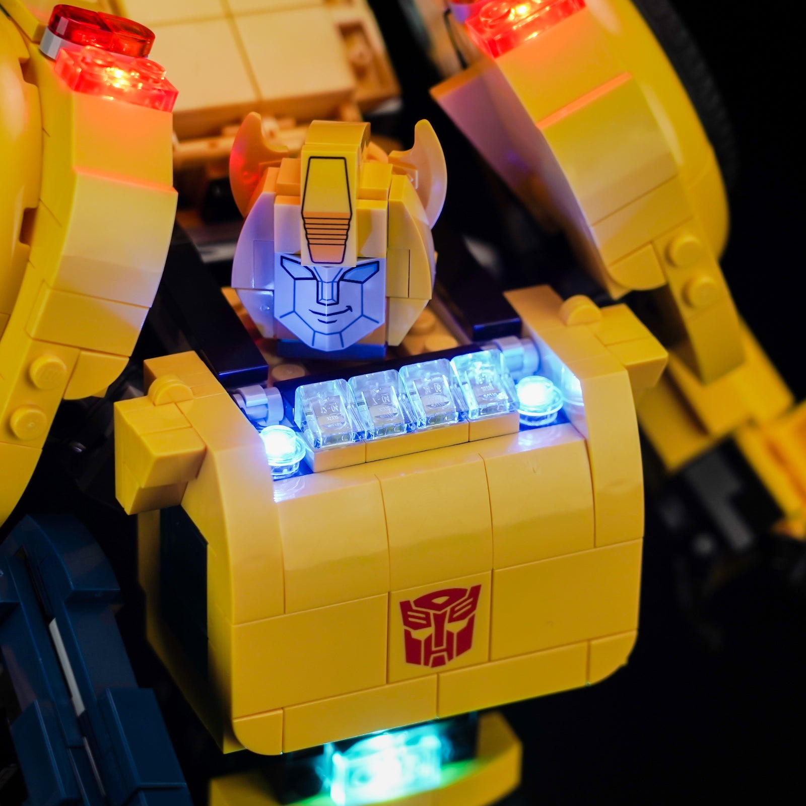 This LEGO Bumblebee model converts from robot to vehicle mode, and our lights are creatively designed to be perfectly compatible with both modes. Whether in human form or beetle form, our lighting kit brings Bumblebee to life with its precise color matching and soft brightness. Perfectly positioned LED lights highlight Bumblebee's iconic features, from his detailed head to his ion blaster, making it seem as if he is ready to start the battle at any time.