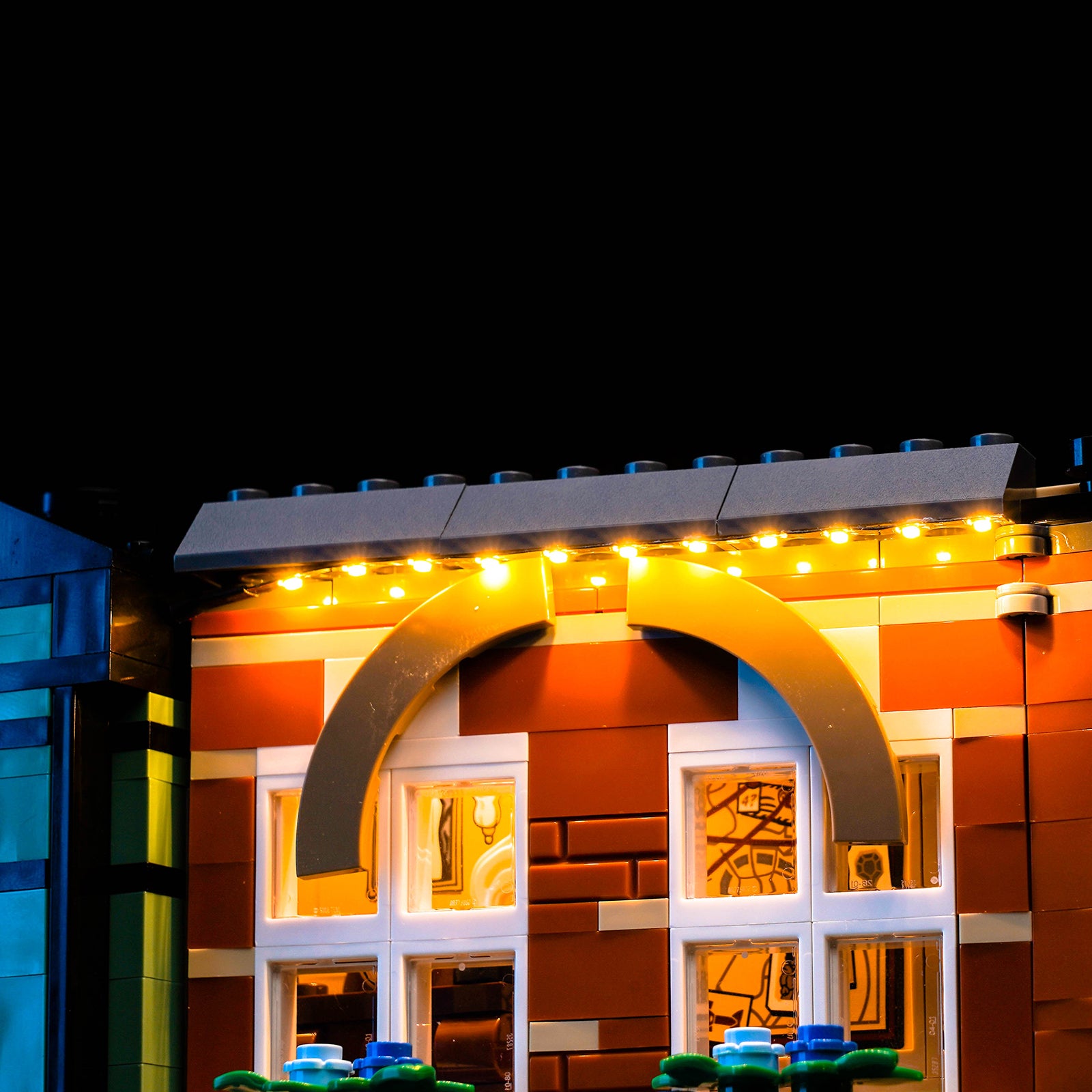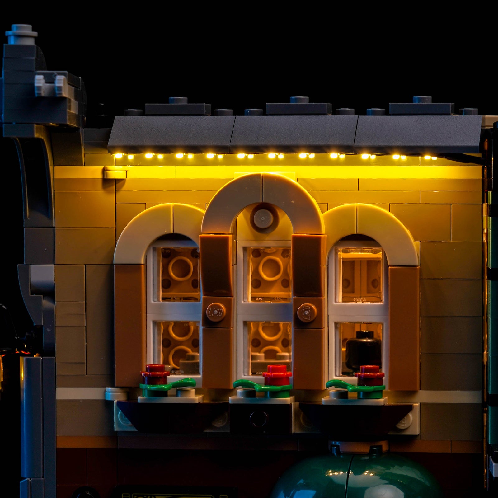 BrickBling customized a warm yellow lighting effect for this book corner with a strong detective atmosphere, making the 10351 Sherlock Holmes Book Corner not only an architectural work, but also an immersive time corridor. The whole kit uses soft warm yellow lighting to restore the dim street lamp atmosphere of Victorian London, illuminating the detailed texture of the streets, windows and masonry structures. The light is slightly visible from the depths of the book corner, as if the silhouette of Sherlock Holmes is meditating by the window. As the lights come on, LEGO is no longer just a toy, but a glowing detective universe.