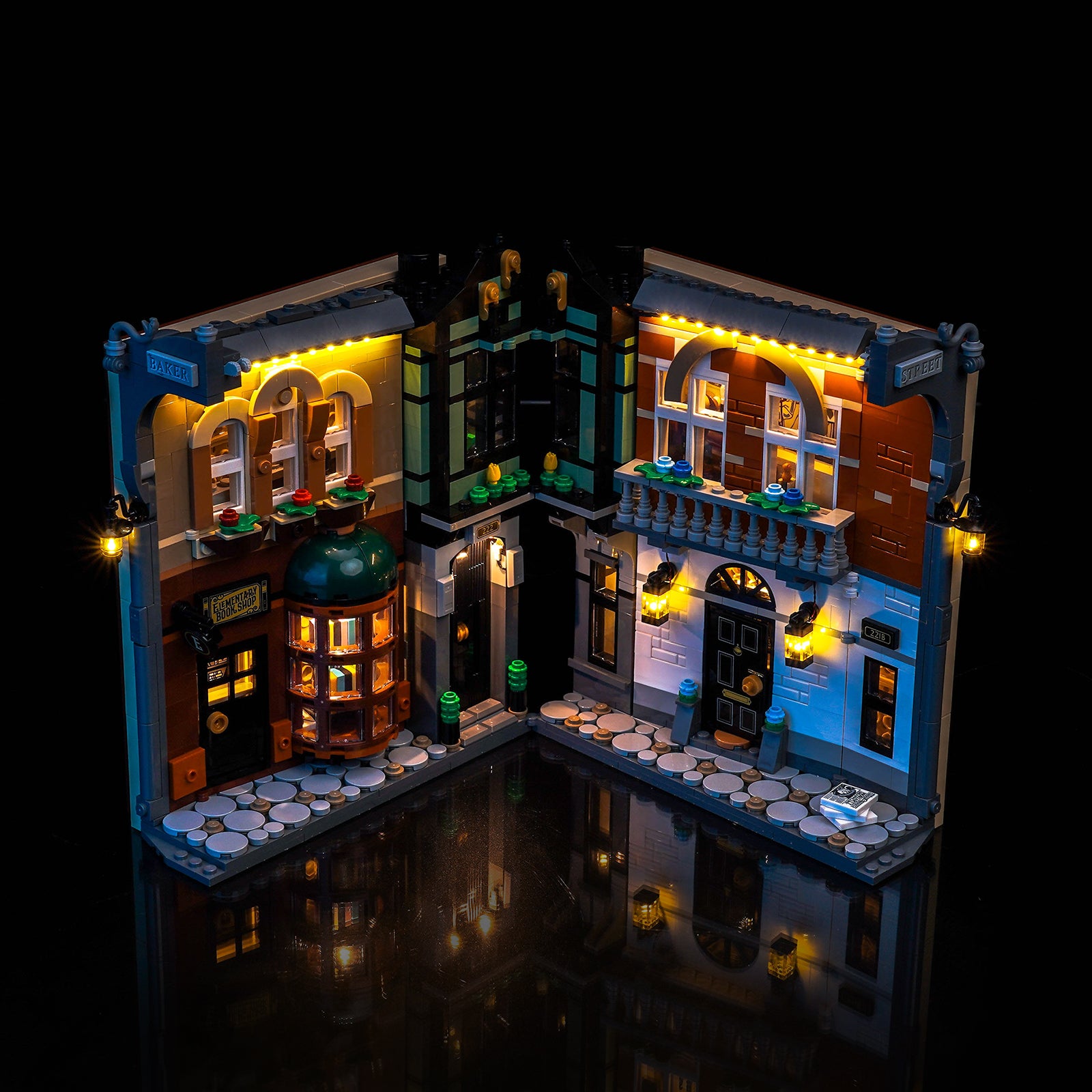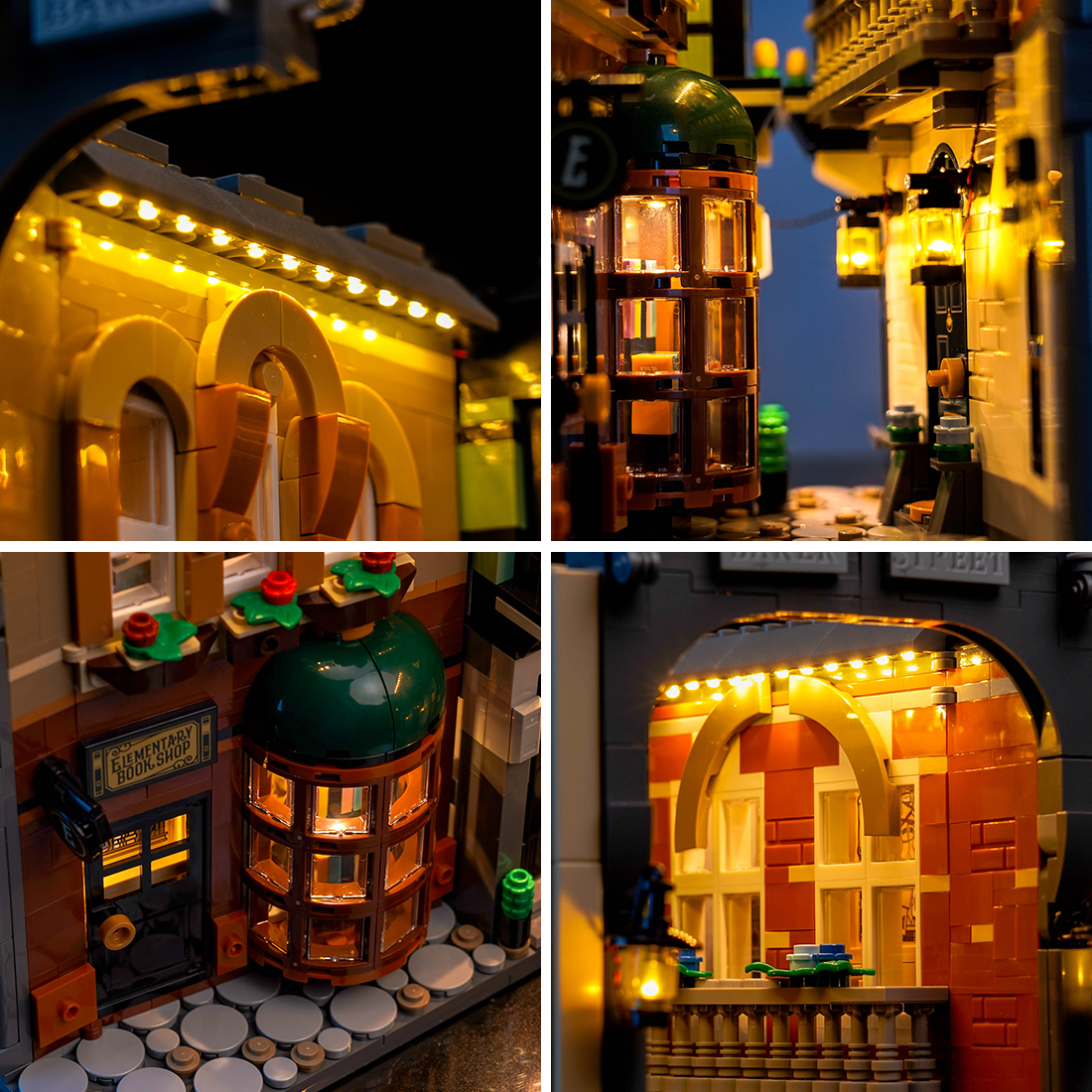 Light up the foggy London and enter the legendary world of Sherlock Holmes! Chase clues between the brick seams and reproduce the classics in light and shadow. BrickBling's carefully crafted exclusive warm color lighting kit is shining!