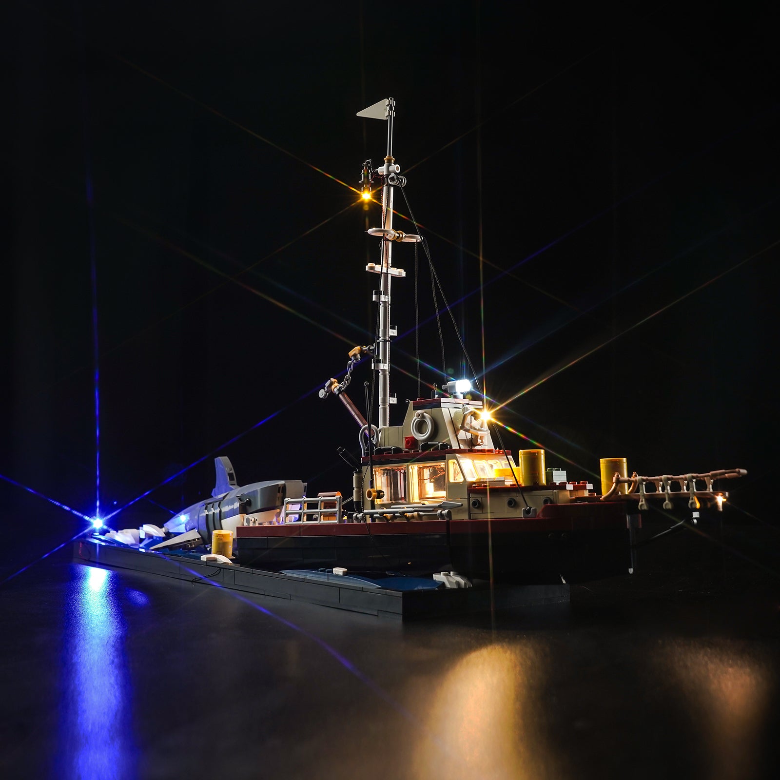 This lighting kit brings the tension and thrill of the classic film to life, lighting up the thrilling scene of the movie Jaws where Quint, Chief Brody and Hooper faced down the shark.