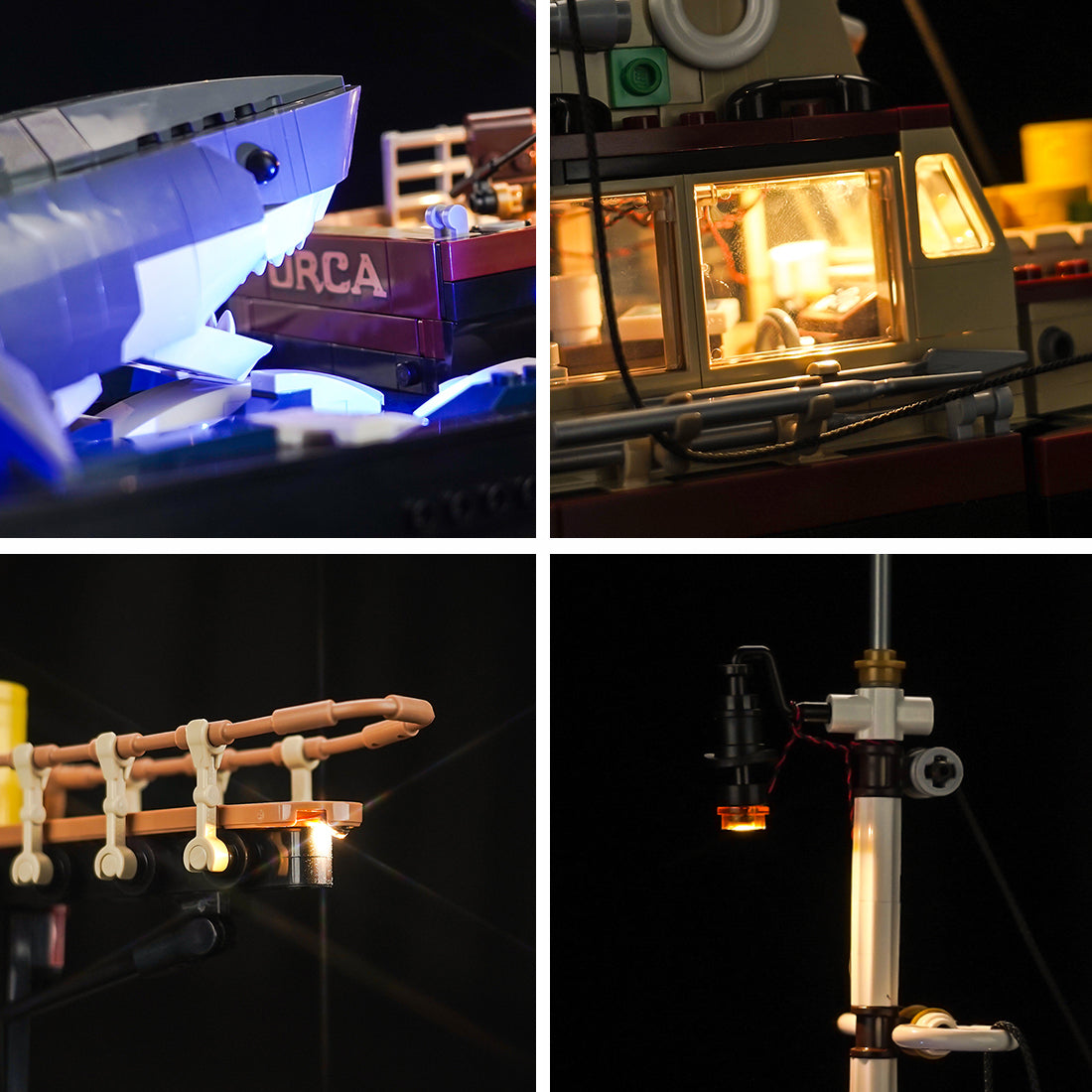 Relive famous moments from the classic Jaws movie with the BrickBling lighting kit designed specifically for the LEGO Ideas Jaws 21350 set.