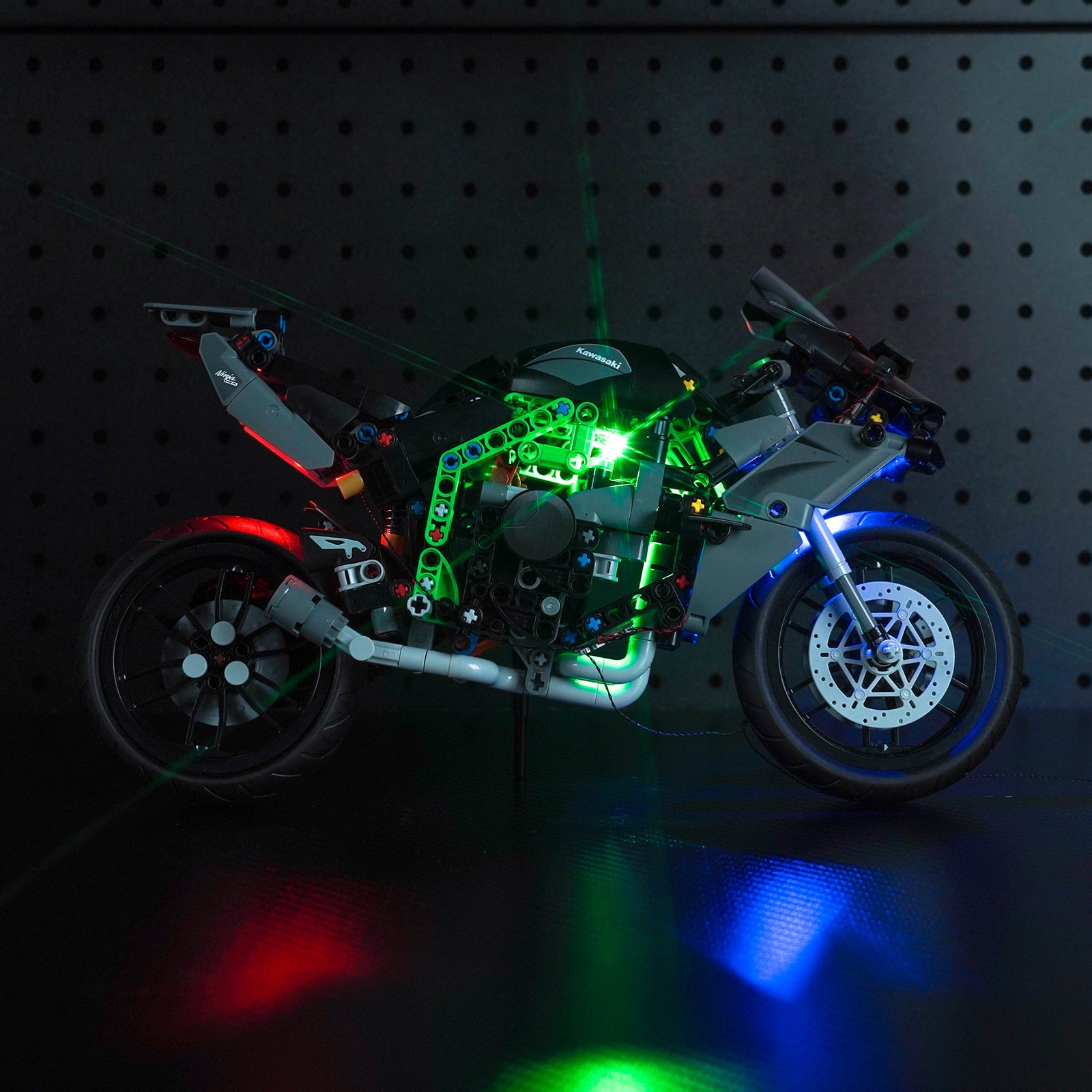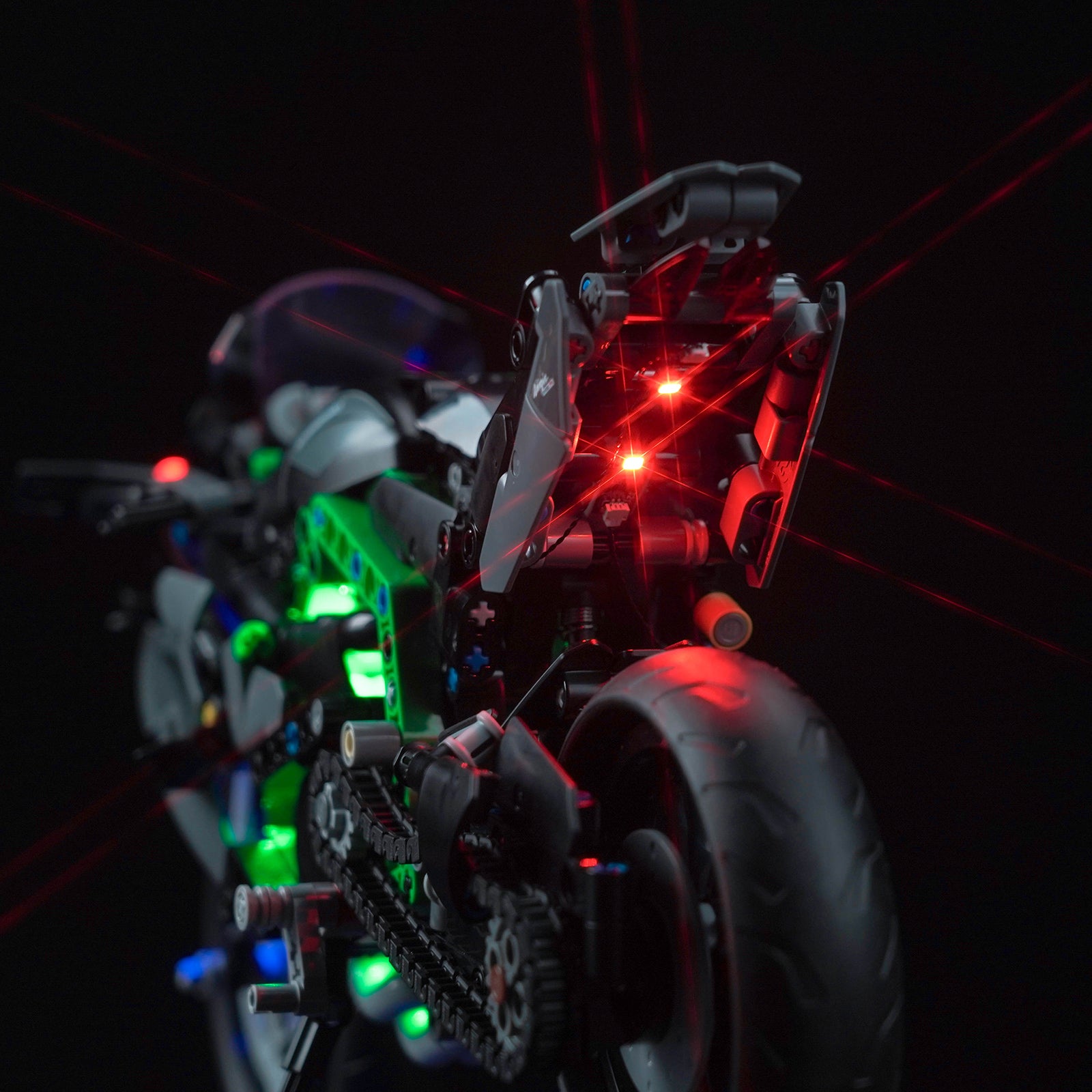 Whether you're a motorcycle enthusiast, LEGO aficionado, or simply appreciate fine craftsmanship, our BrickBling Light Kit for the Kawasaki Ninja H2R Motorcycle promises to take your building experience to new heights. Ride into the night with style and sophistication, and let your creation shine as brightly as your passion for adventure.