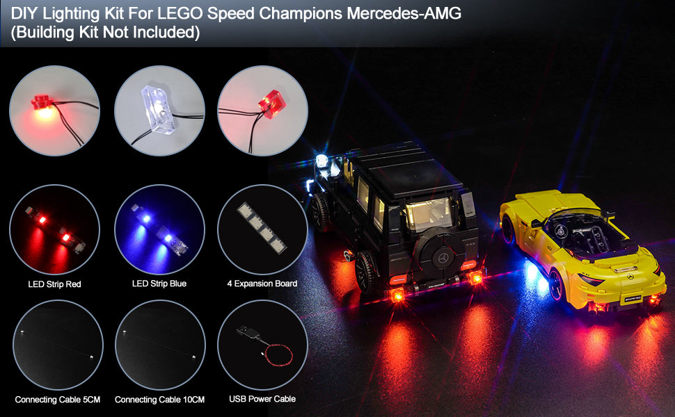 - High Quality: Crafted from high-grade ABS materials and copper, our light kit ensures safety and durability. The lightweight wires can be easily concealed within your LEGO Mercedes-AMG model, ensuring a seamless integration without any damage to your Mercedes-AMG G 63 & Mercedes-AMG SL 63 cars during installation.