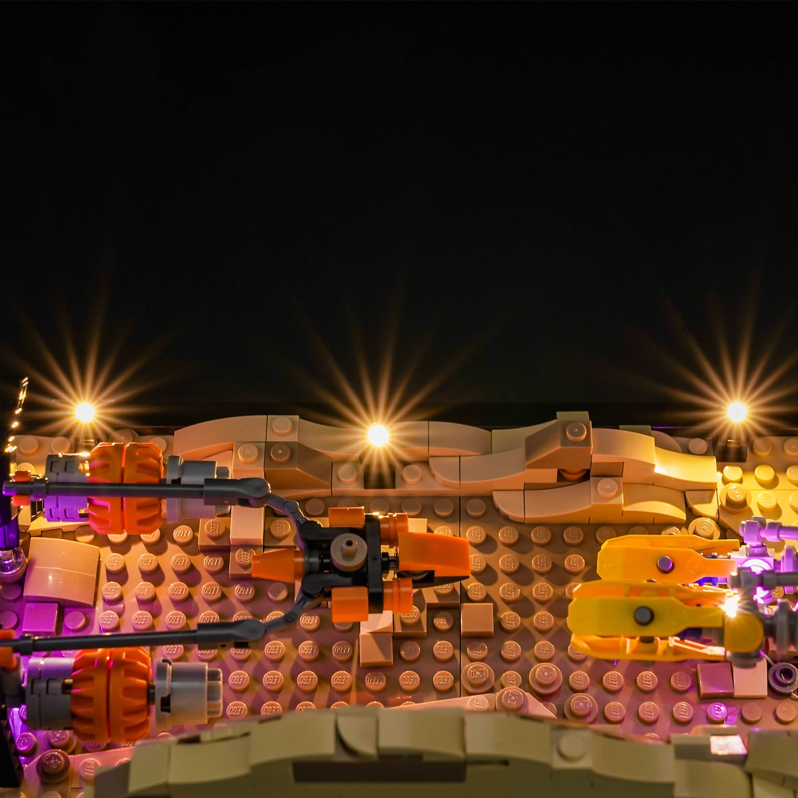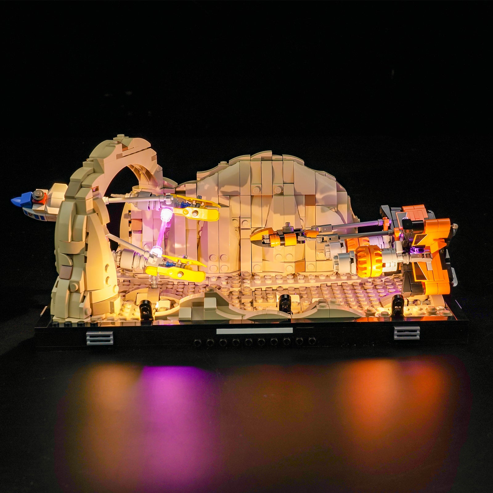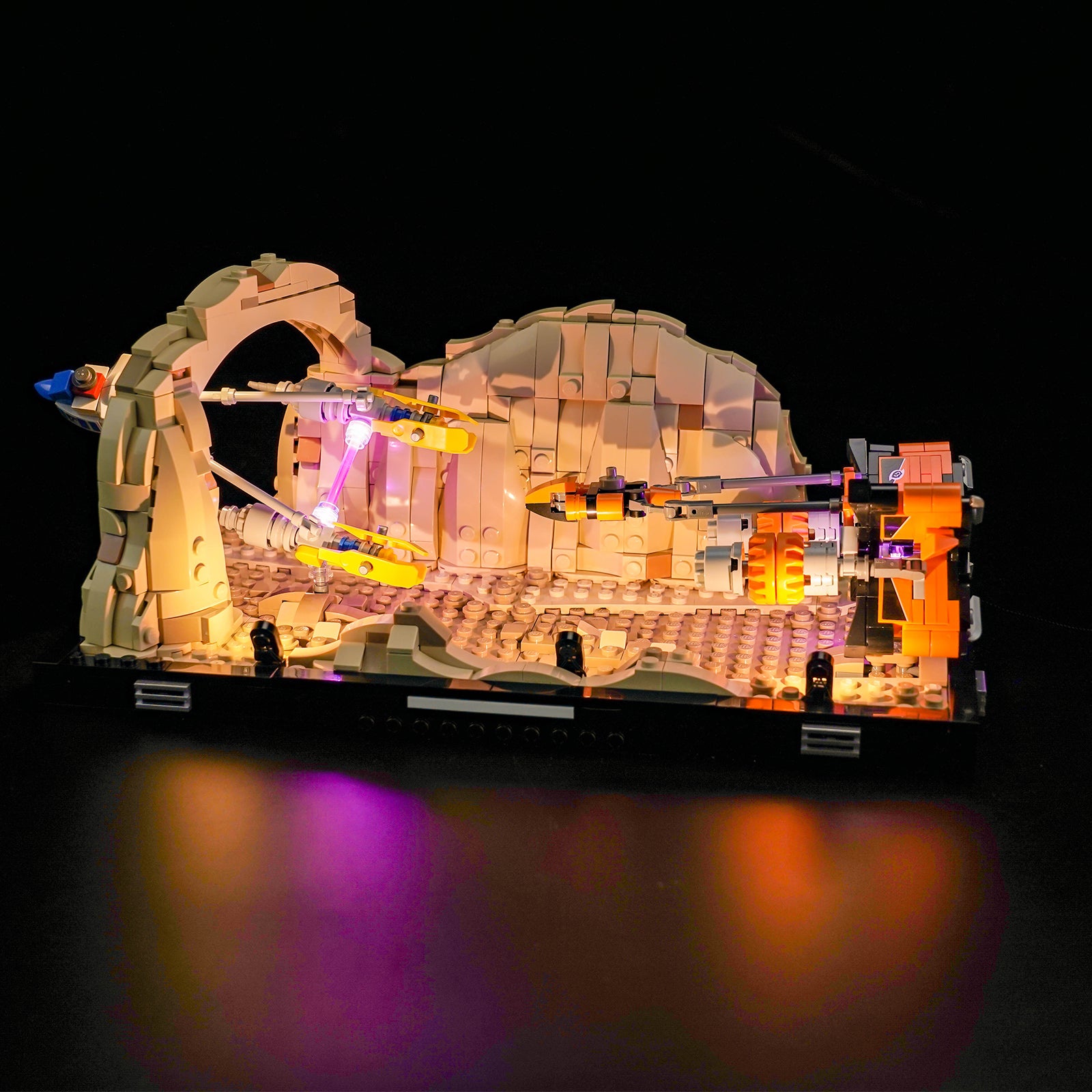 Our light kit adds an extra layer of realism to your LEGO diorama, immersing you in the heart-pounding action of the podracing event. The vibrant LED lights bring each pod racer to life, highlighting every detail of their unique design.