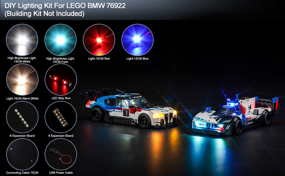 • BrickBling Light Kit for LEGO Speed Champions BMW M4 GT3 & BMW M Hybrid V8 Race Cars 76922
