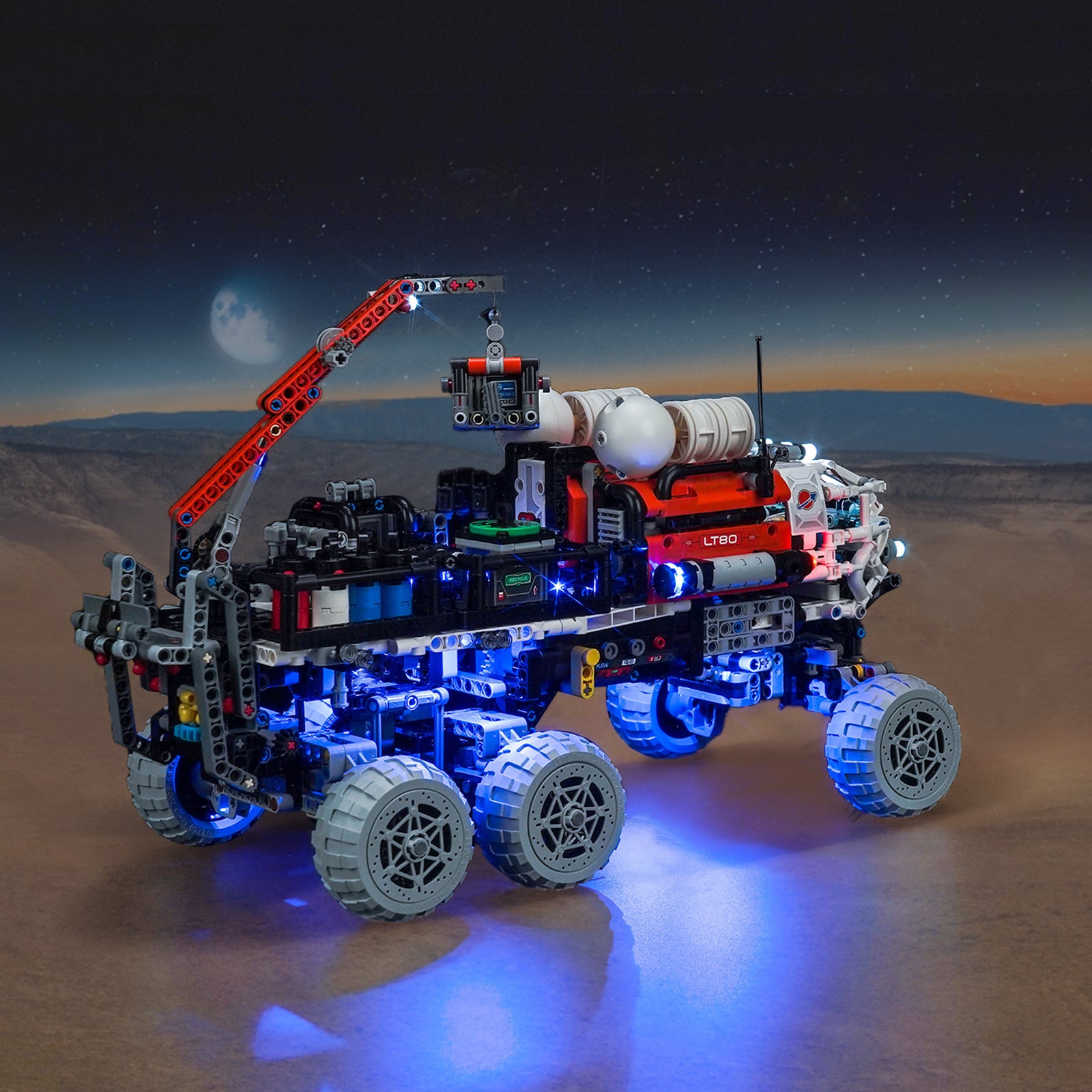 This BrickBling light kit tailored for the LEGO Technic Mars Crew Exploration Rover 42180 adds a mesmerizing touch to your interstellar adventures.