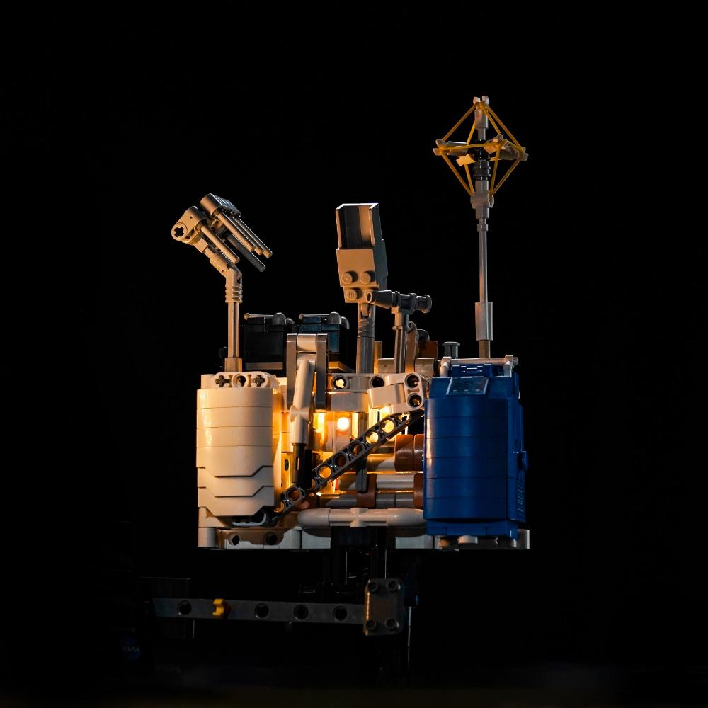 The set includes a displayable model version of the lunar rover module carried by Apollo 17, as well as 3 sets of connectable devices. Our immersive LEGO lights perfectly illuminate every complex design detail, whether it is the precise body frame, unique lunar wheels, or simple control system, the various colors of lights capture the essence of this legendary vehicle. Every beam of light carries the desire for the unknown and the admiration for technology.